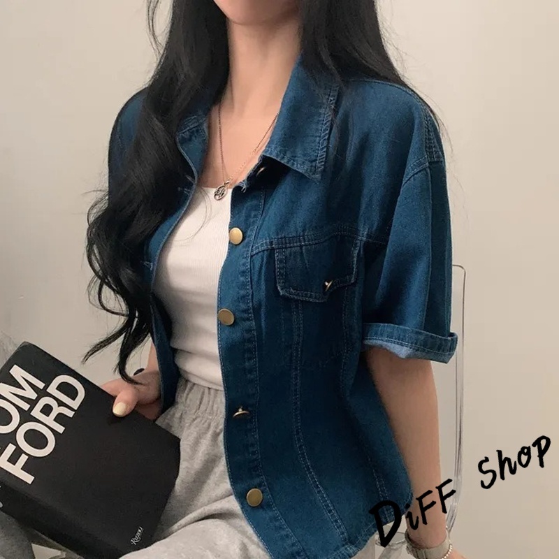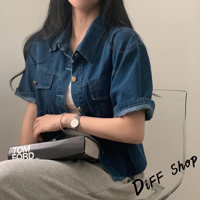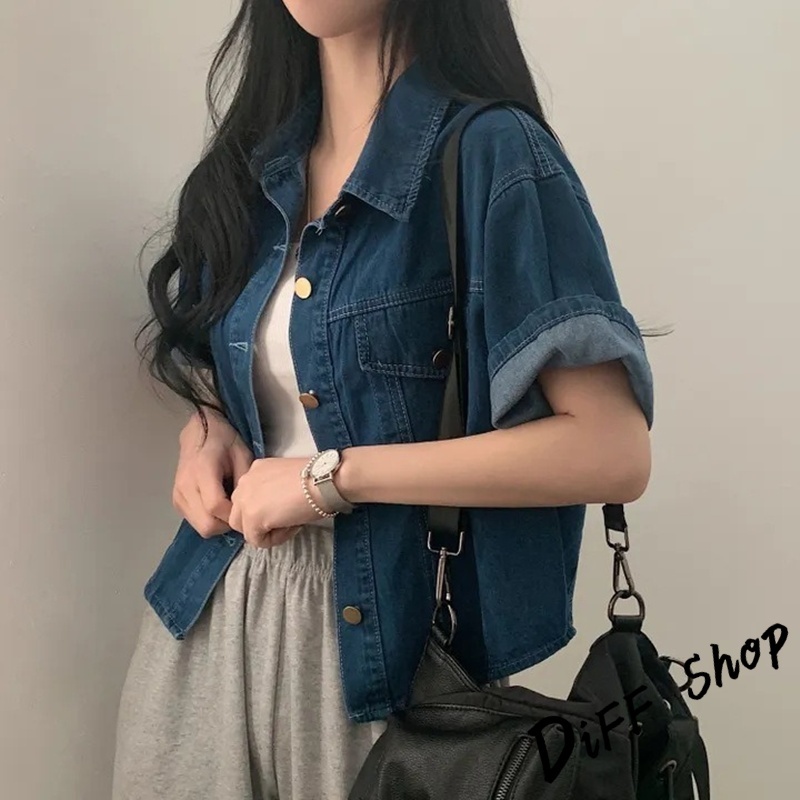 【DIFF】韓版復古寬鬆休閒百搭短袖牛仔外套 上衣 女裝 衣服 薄外套 罩衫 防曬外套 小外套 短版外套【J389】【J389】淺藍色|【J389】深藍色JacketsDiFF shop