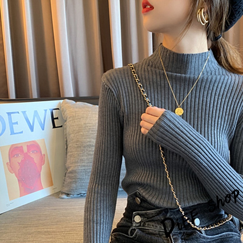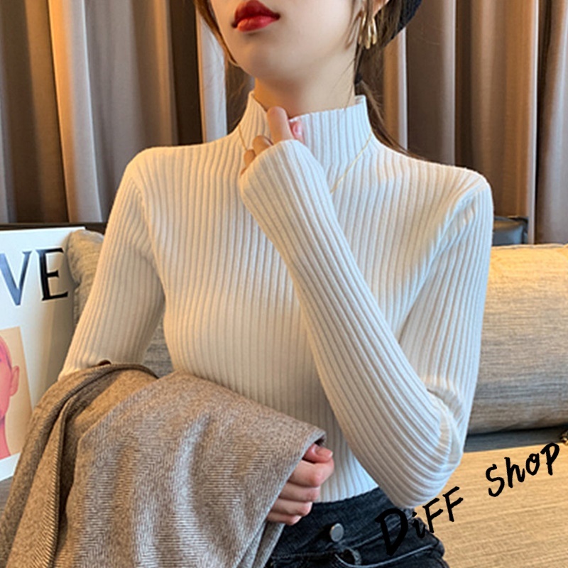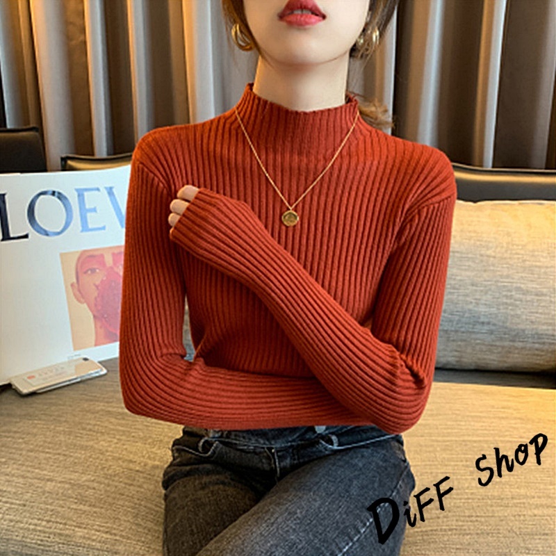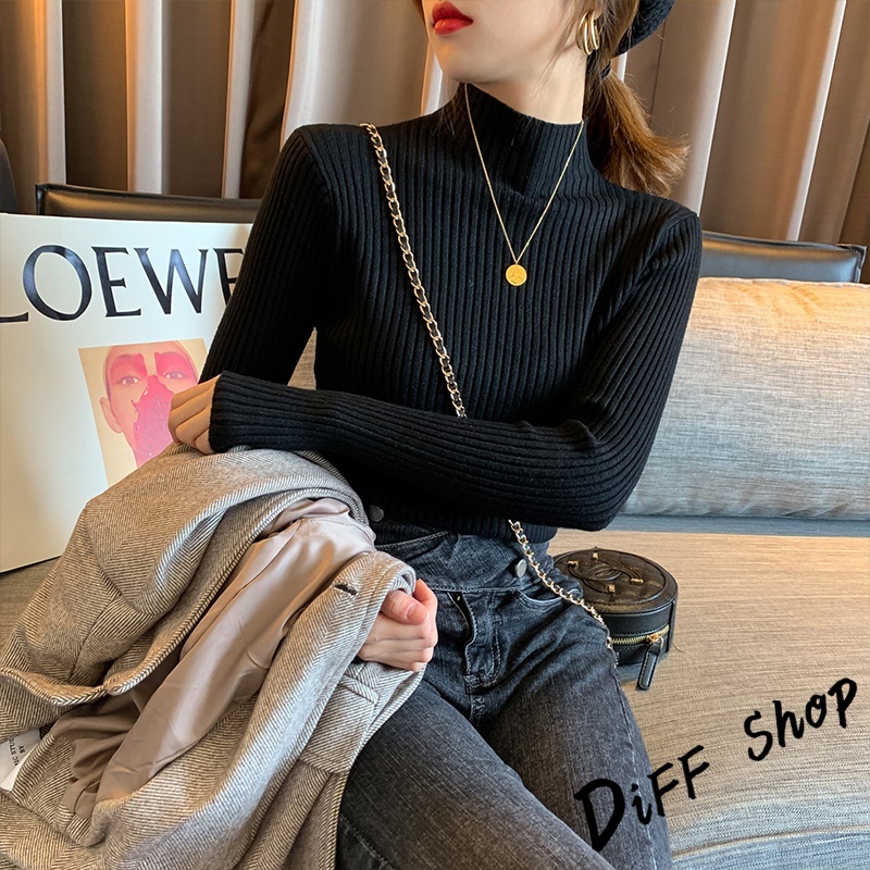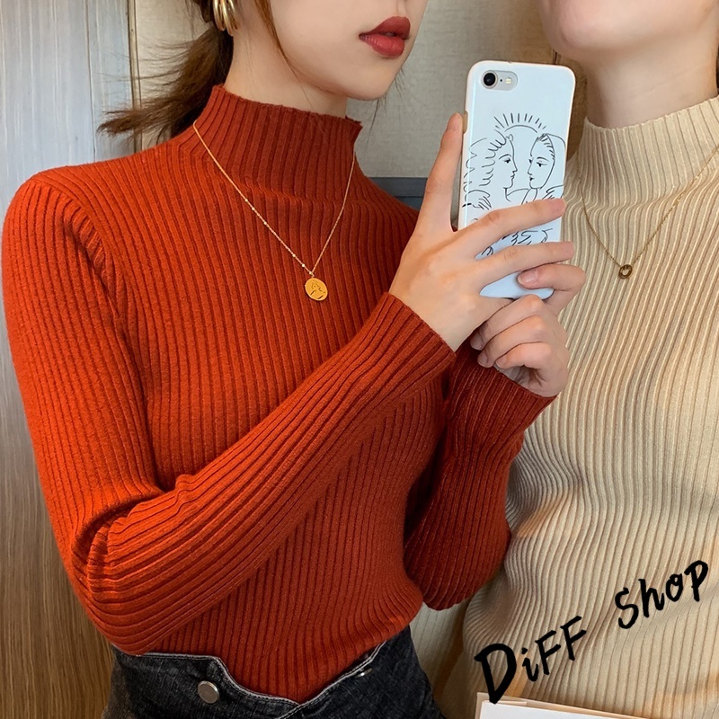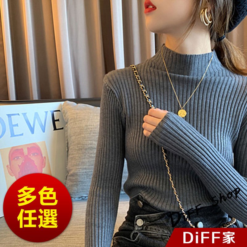 【DIFF】韓版內搭半高領百搭針織上衣 毛衣 長袖上衣 女裝 衣服 長袖t恤 保暖上衣 冬天女裝 發熱衣【W145】【W145】墨綠|【W145】咖啡|【W145】灰色|【W145】黑色|【W145】白色|【W145】杏色DiFF shop