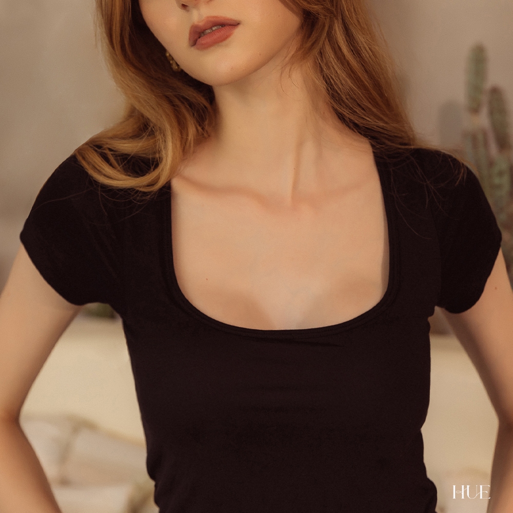 HUE-柔軟棉質短袖bra top(內含胸墊) 短版上衣 方領短t 完美胸型 美胸上衣【CB00-010020】[現貨]黑,M|黑,L|灰,S|灰,M|灰,L|黑,ST-shirtsCHECK 2 CHECK官方旗艦店
