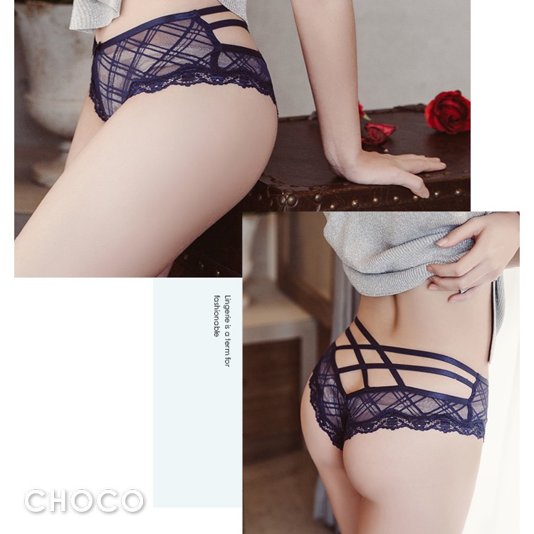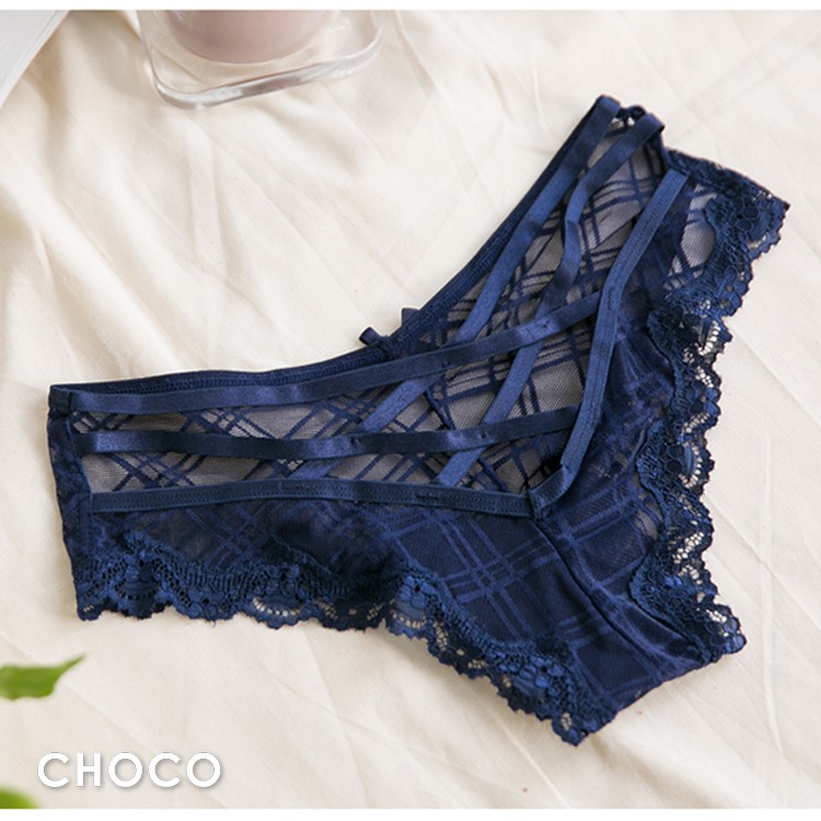 Choco Shop 危險情人 背面交叉設計蕾絲透膚彈性內褲(寶藍色) M-L寶藍M|寶藍LPantiesCHOCO SHOP