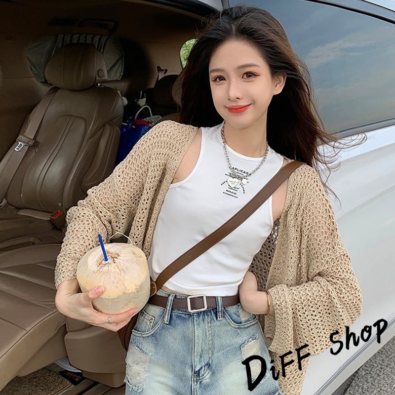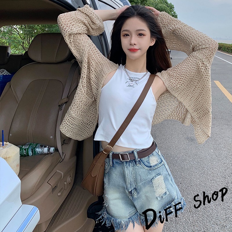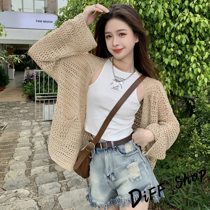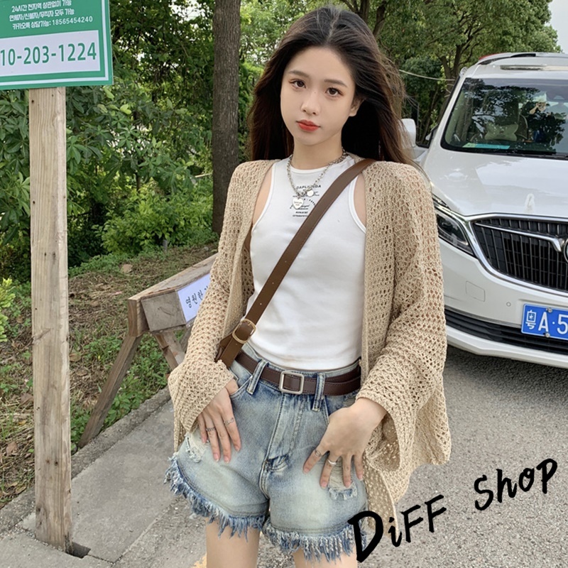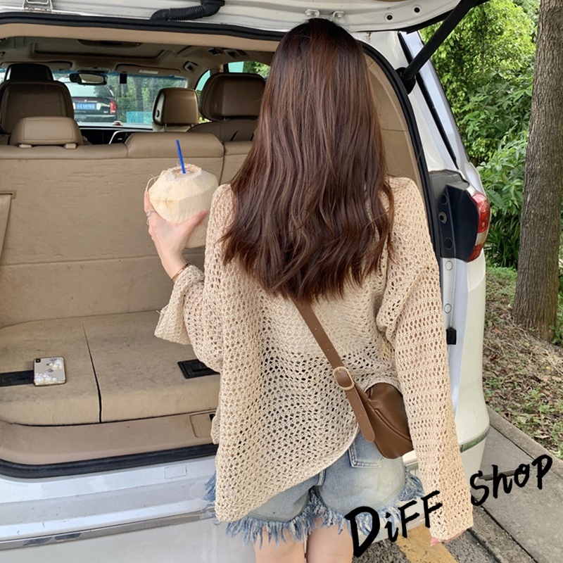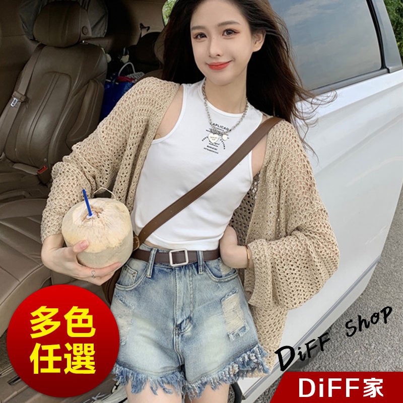 【DIFF】韓版薄款寬鬆慵懶風鏤空防曬外套 上衣 女裝 衣服 外套 長袖上衣 短版外套 針織上衣 針織外套【J331】【J331】卡其|【J331】咖啡DiFF shop