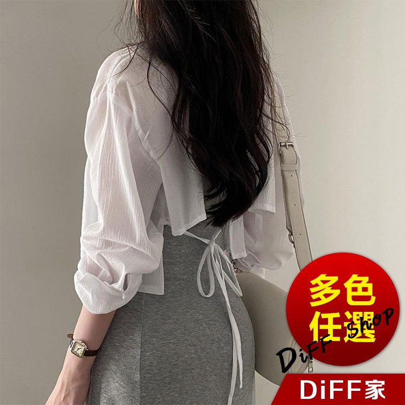 【DIFF】韓版小心機後背綁帶襯衫 長袖上衣 女裝 衣服 寬鬆上衣 顯瘦上衣 長袖t恤 冬裝 防曬外套【W410】【W410】白色|【W410】藍色Shirts & BlousesDiFF shop