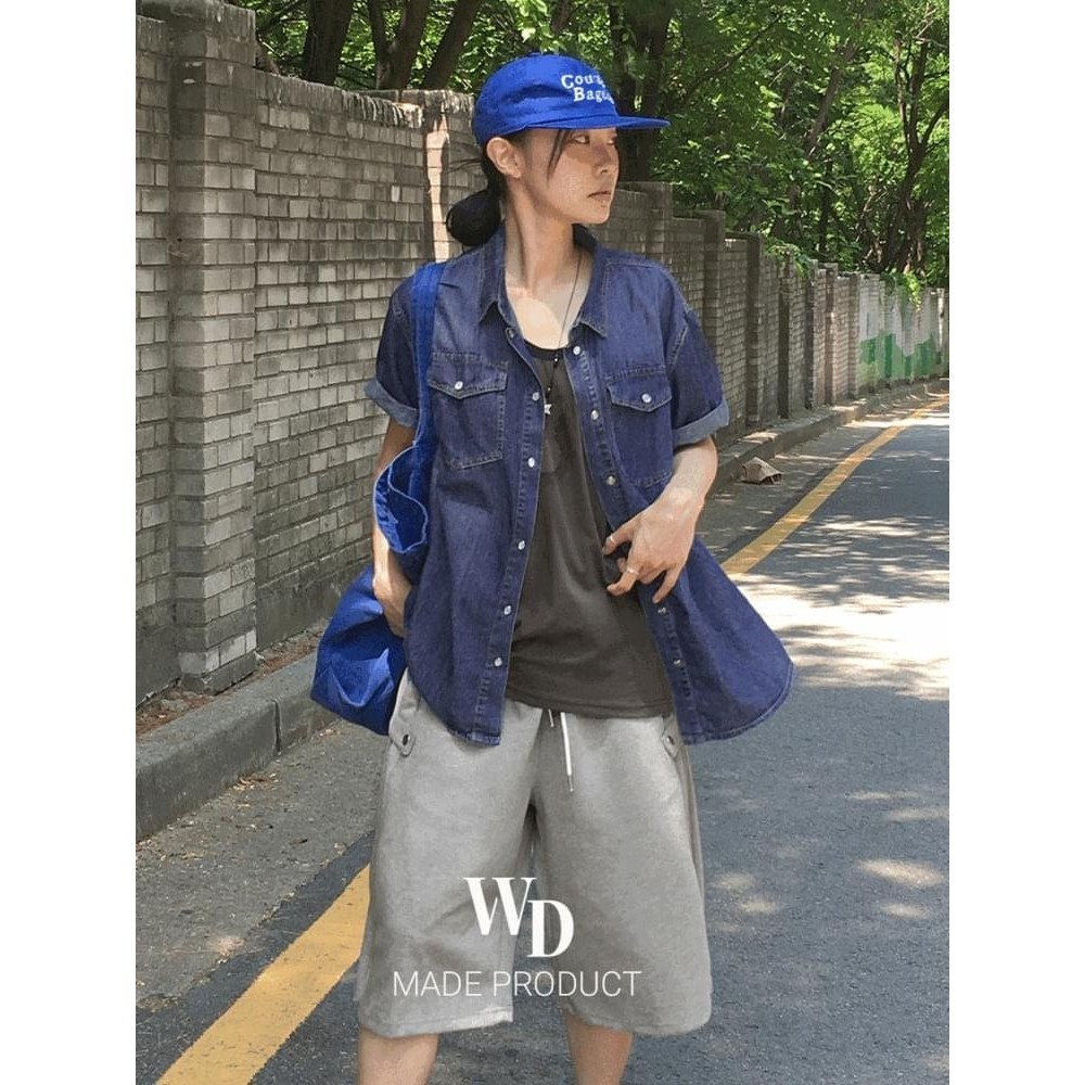 Codibook|韓國 wonderwonder 水洗丹寧短袖立領襯衫[預購]襯衫 女裝丹寧,FREEShirts & BlousesCodibook 韓國女裝購物平台
