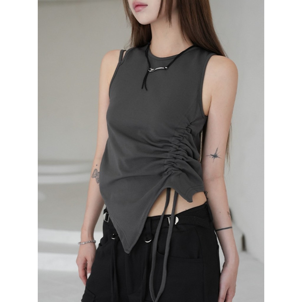 Codibook|韓國 binary01 不平衡褶皺抽繩設計無袖背心[預購]無袖 女裝白色,FREE|深灰色,FREE|黑色,FREETanks & CamisolesCodibook 韓國女裝購物平台