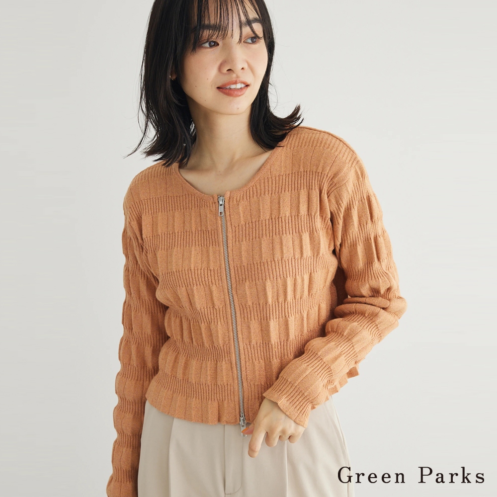 Green Parks 羅紋拼接短版拉鍊開襟衫(6P41L2D0500)象牙色F|黑色F|橙色FCapesearth music&ecology Select Store