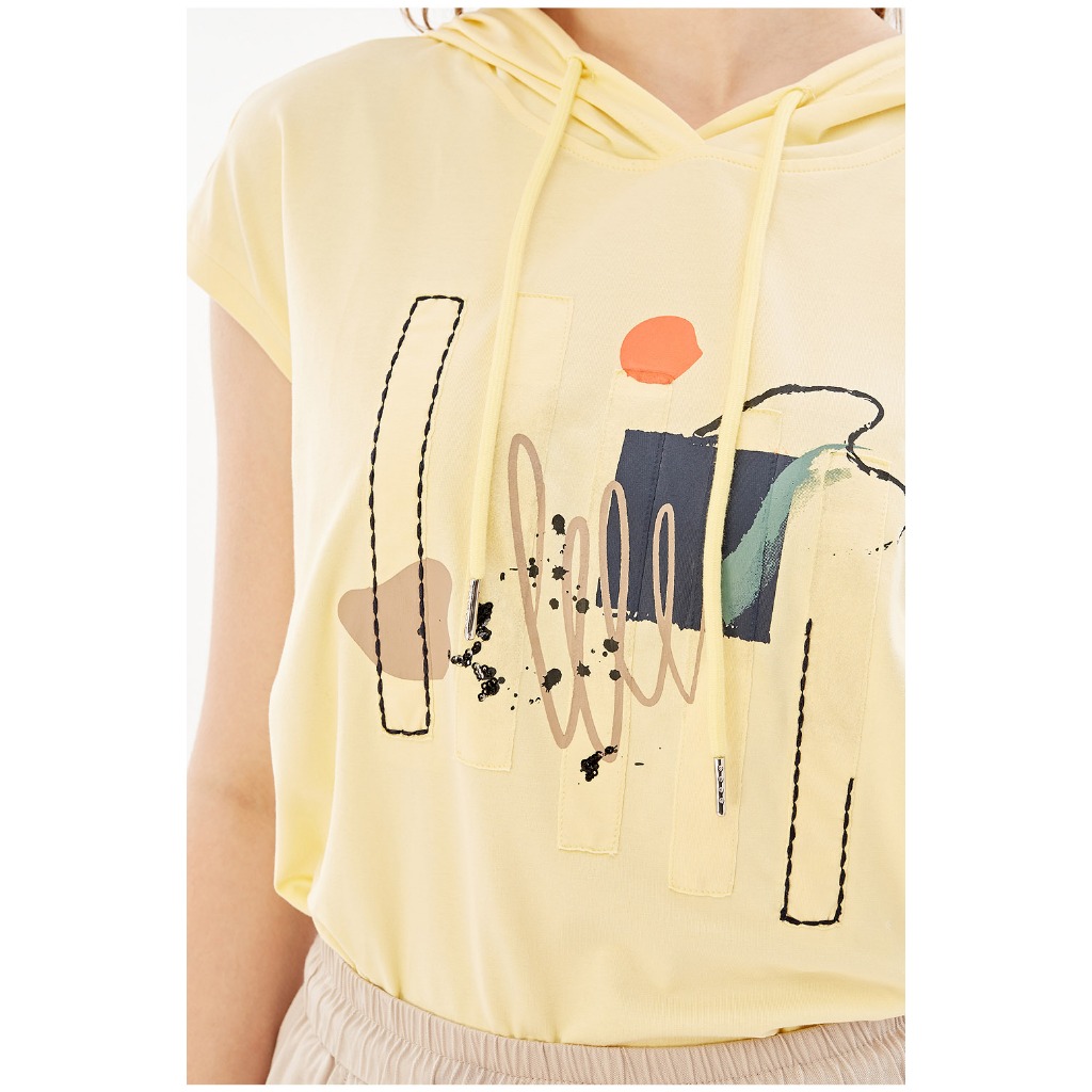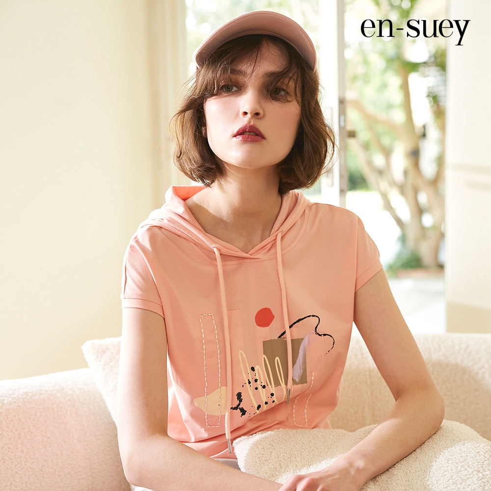 【en-suey 銀穗】手繪塗鴉圖案連帽短袖上衣-粉/黃 4713-1158黃色,XL|粉色,M|粉色,L|粉色,XL|黃色,M|黃色,LHoodiesen-suey 銀穗