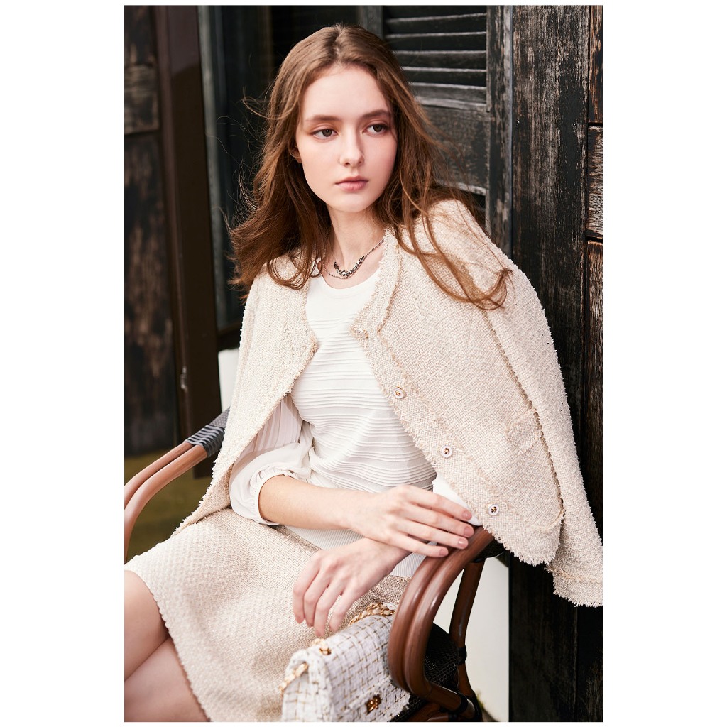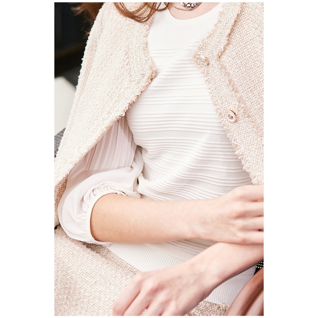 【en-suey 銀穗】雪紡壓褶袖圓領橫紋組織線衫 – 白/黑 5113-5301