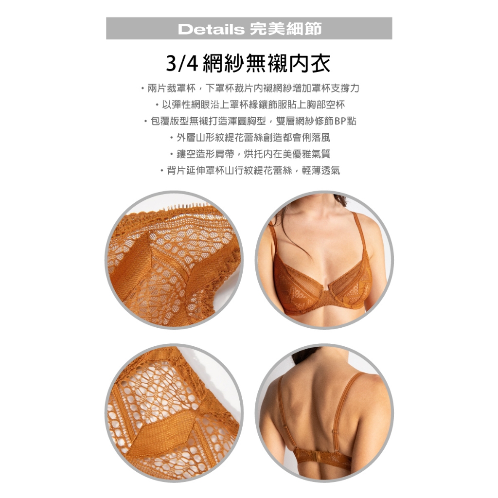 【Passionata】Scarlett_3/4網紗無襯內衣_C-D罩杯(42YM0_P07松果棕)C70,P07松果棕|C75,P07松果棕|C80,P07松果棕|D80,P07松果棕BrasChantelle 仙黛爾集團官方旗艦店