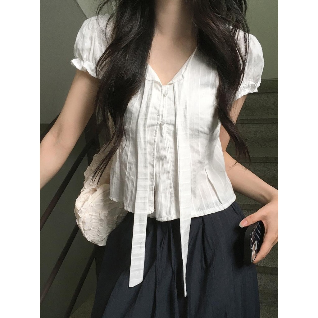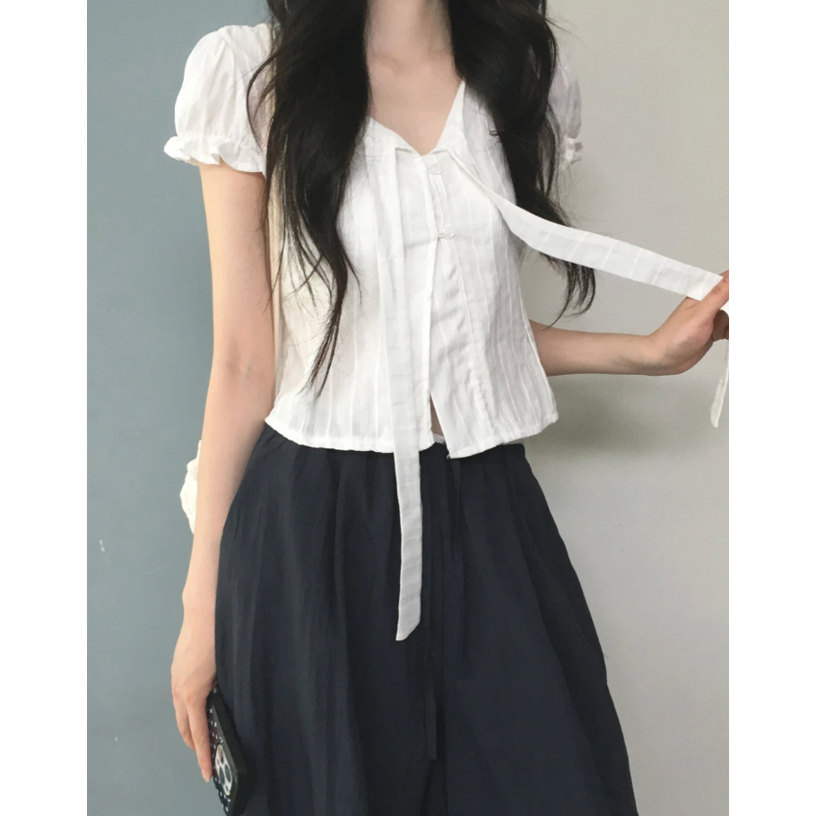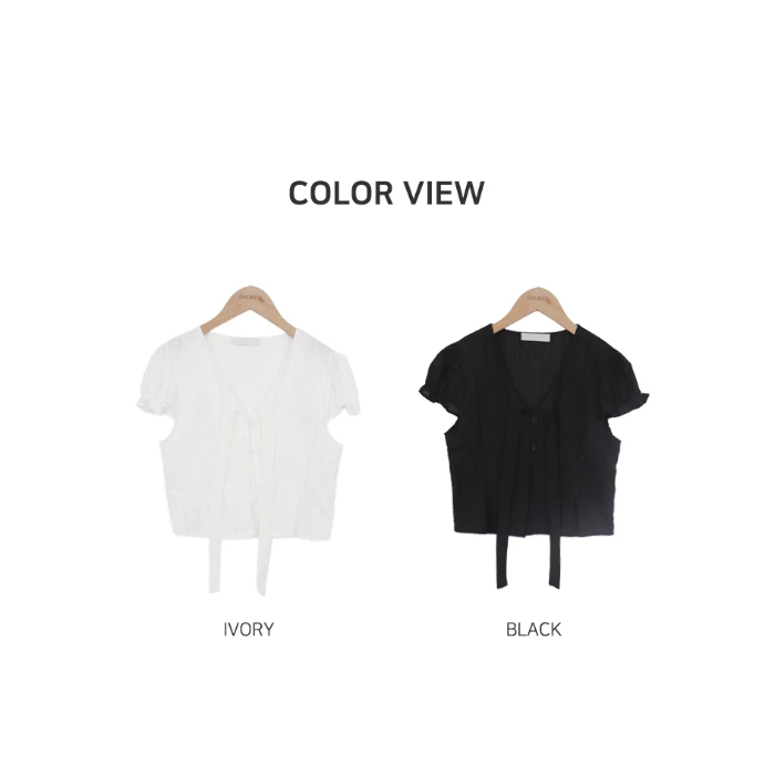 Codibook|韓國 ondeed 羅紋綁帶澎袖V領短袖襯衫[預購]雪紡襯衫 女裝黑,FREE|象牙白,FREEShirts & BlousesCodibook 韓國女裝購物平台