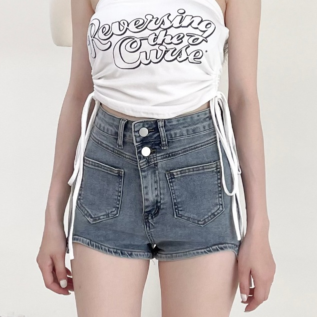 【DOEFF】 顯瘦高腰兩釦牛仔短褲 短褲女 牛仔褲女 高腰短褲 顯瘦短褲 牛仔短褲 辣妹短褲