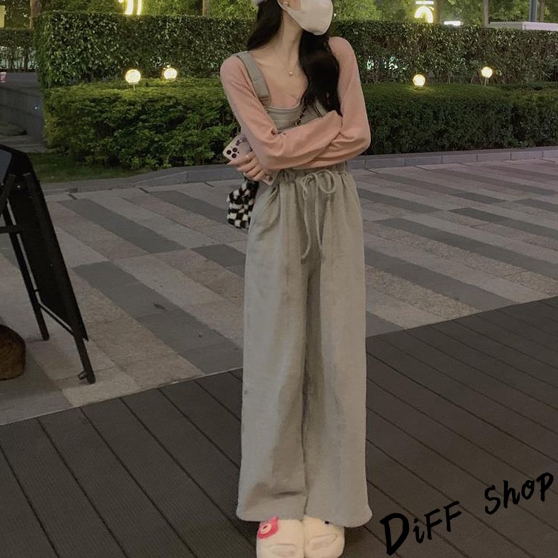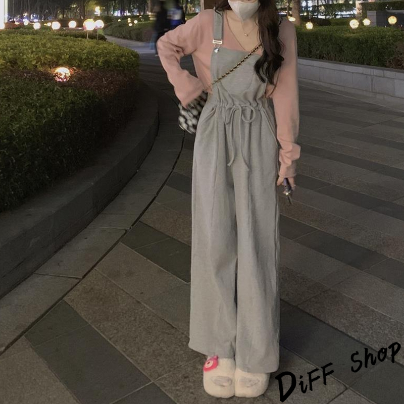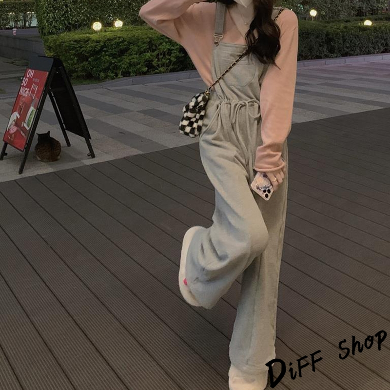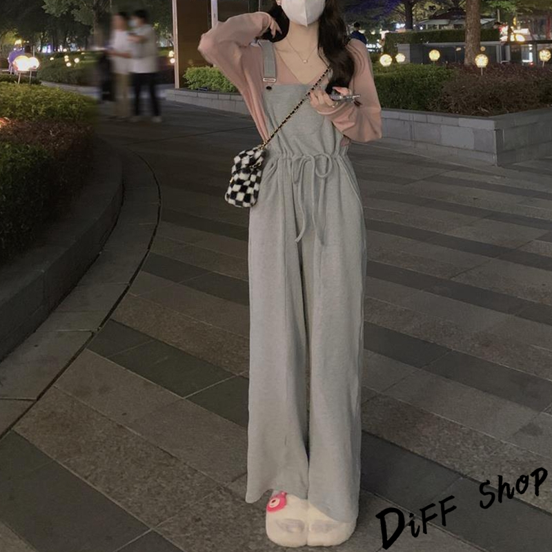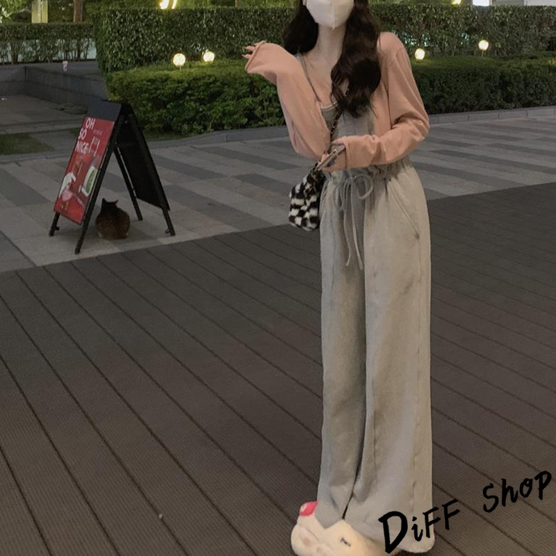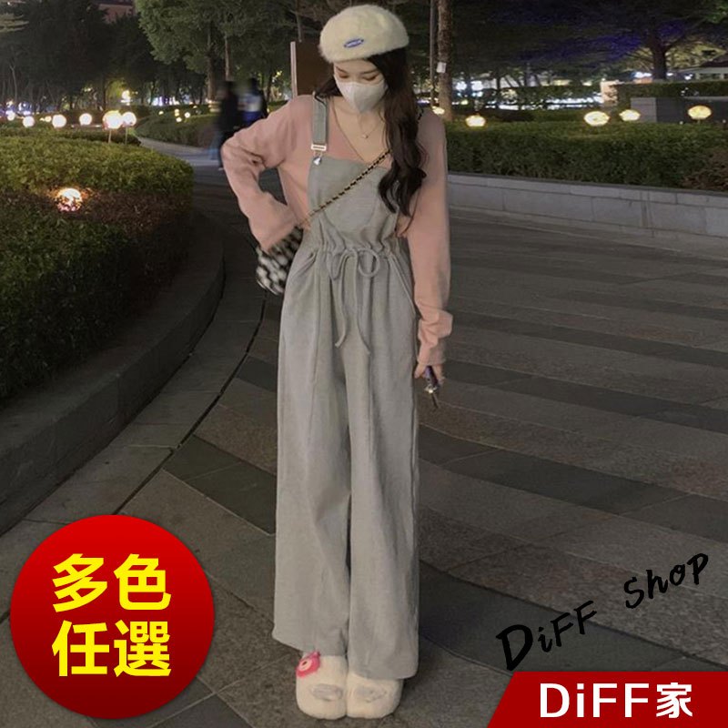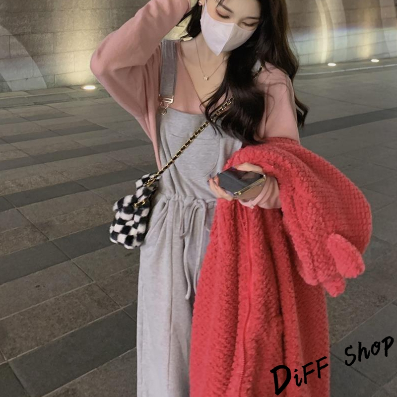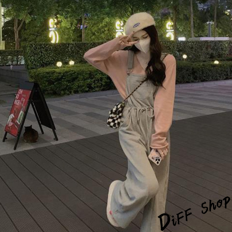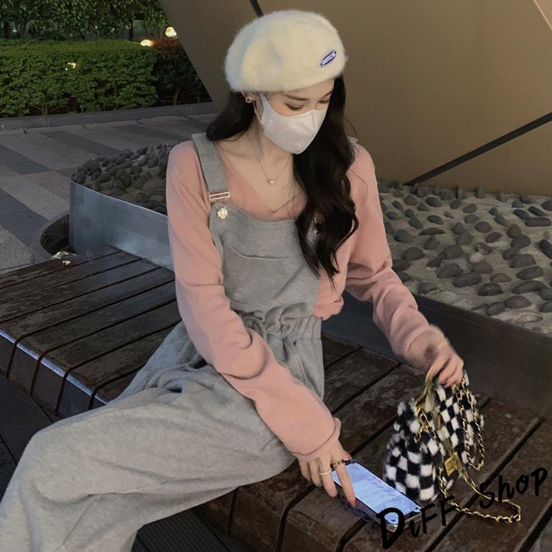 【DIFF】韓版寬鬆長袖上衣+慵懶休閒吊帶褲 套裝 女裝 衣服 寬鬆上衣 長褲 褲子 連身褲 W443【P301】【W443】上衣-粉色|【P301】吊帶褲-灰色Individual SetsDiFF shop