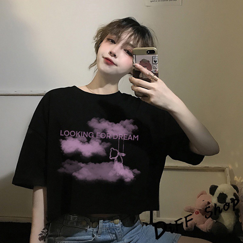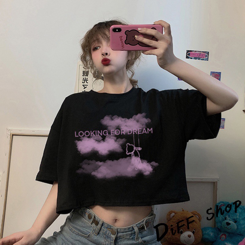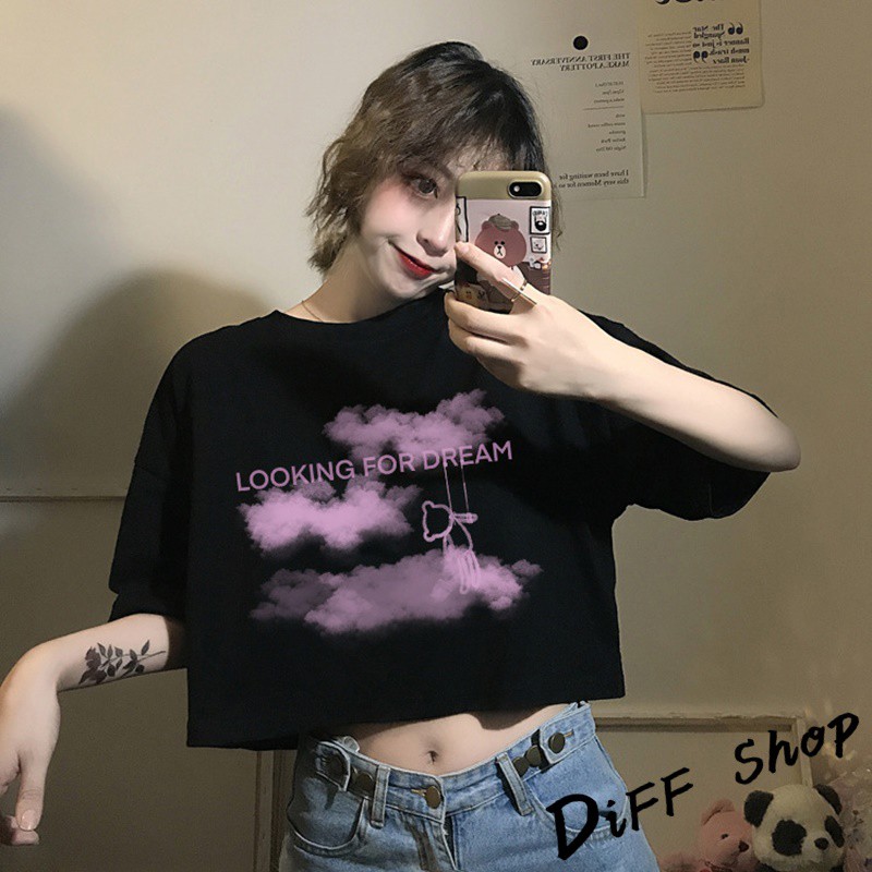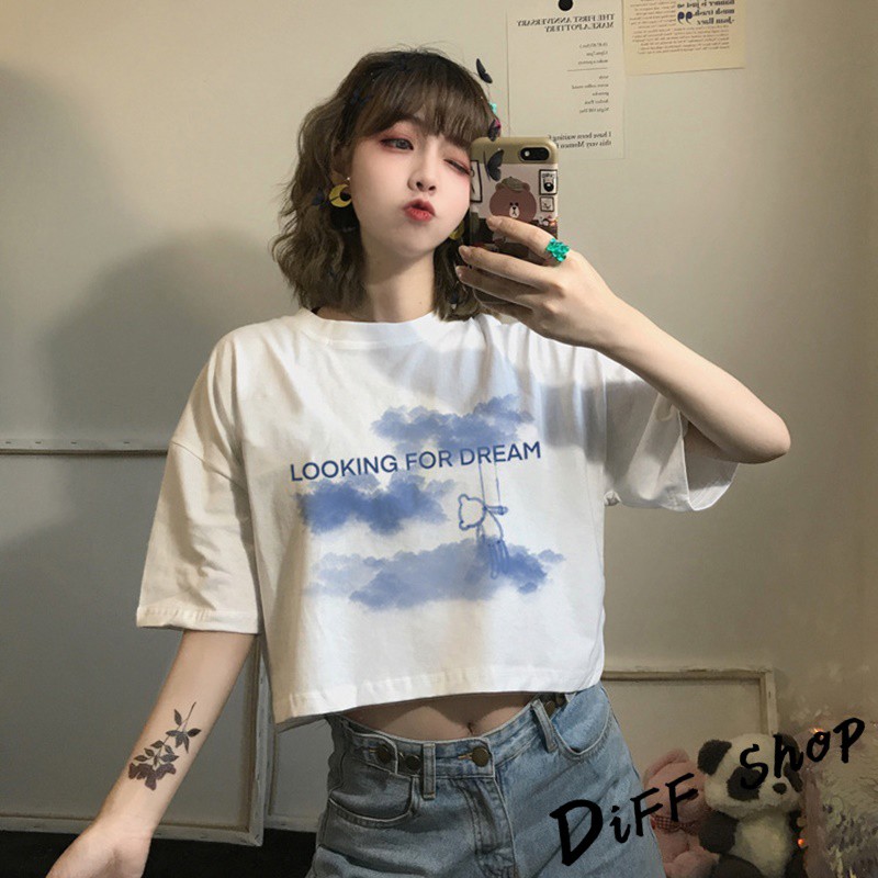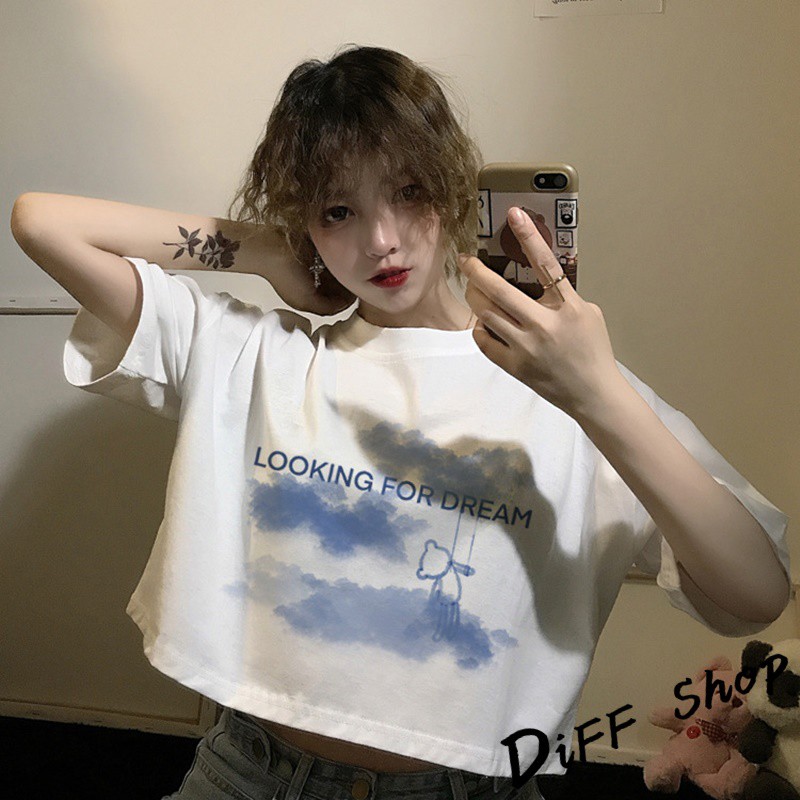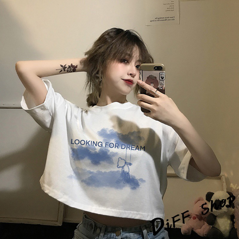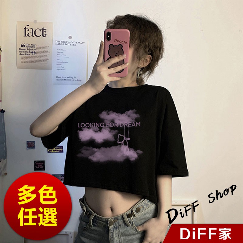 【DIFF】韓版寬鬆高腰短版上衣 短袖上衣 短袖t恤 女裝 顯瘦上衣 衣服 寬鬆上衣 素T 短板上衣【T330】【T330】黑色|【T330】白色T-shirtsDiFF shop