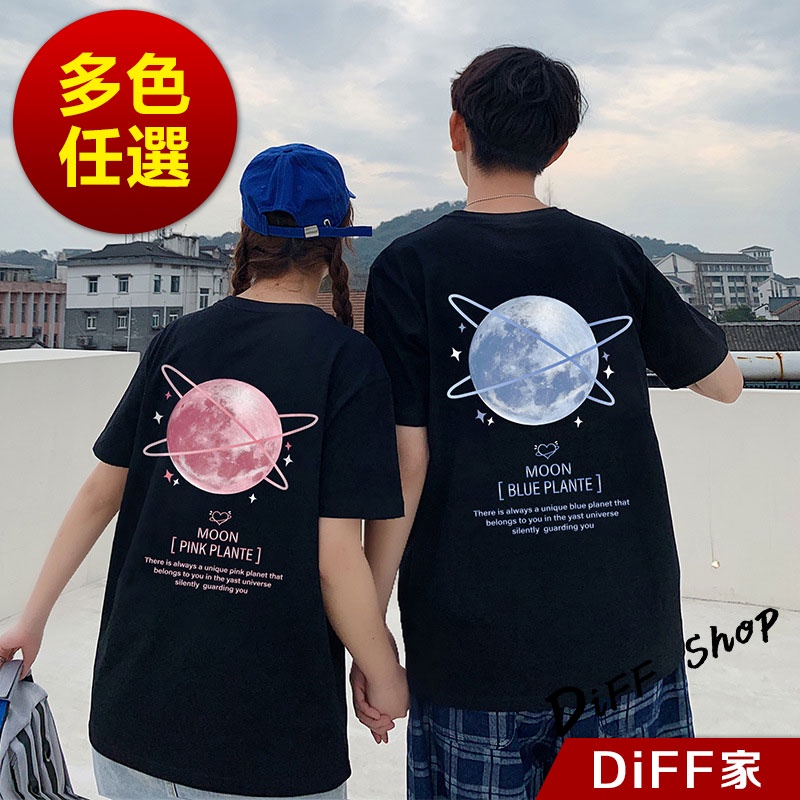 【DIFF】韓版寬鬆星球短袖上衣 情侶裝 情侶服 情侶T 團體服 班服 短袖t恤 女裝 衣服 寬鬆上衣【T433】【T433】白底粉星球|【T433】黑底粉星球|【T433】白底藍星球|【T433】黑底藍星球T-shirtsDiFF shop