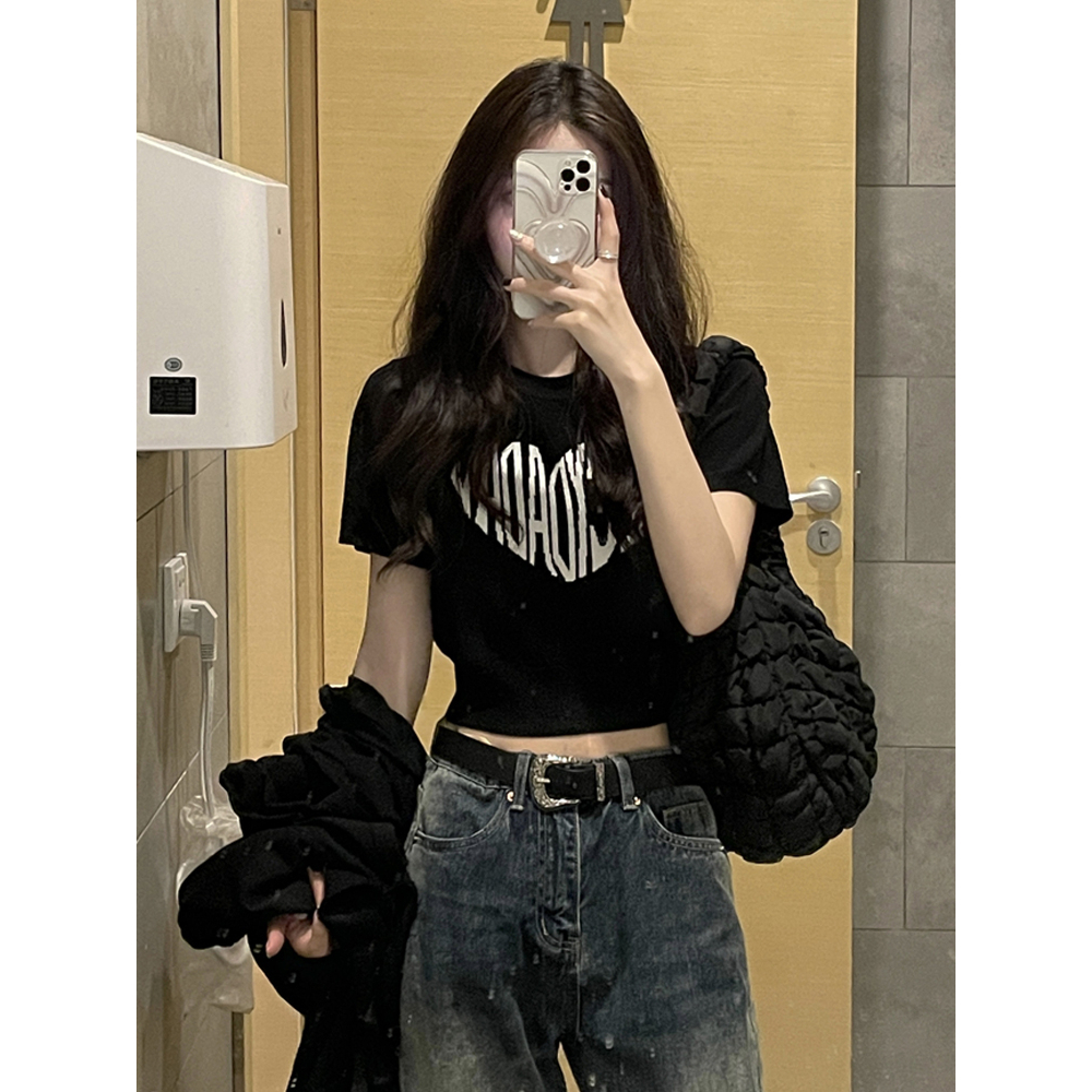 CHAOO 短板上衣 性感上衣 設計感上衣 韓版上衣 辣妹 上衣 夏天衣服 短版上衣短袖 短版衣服 印花黑色,M|黑色,L|黑色,ST-shirtsCHAOO 台北原創服飾品牌