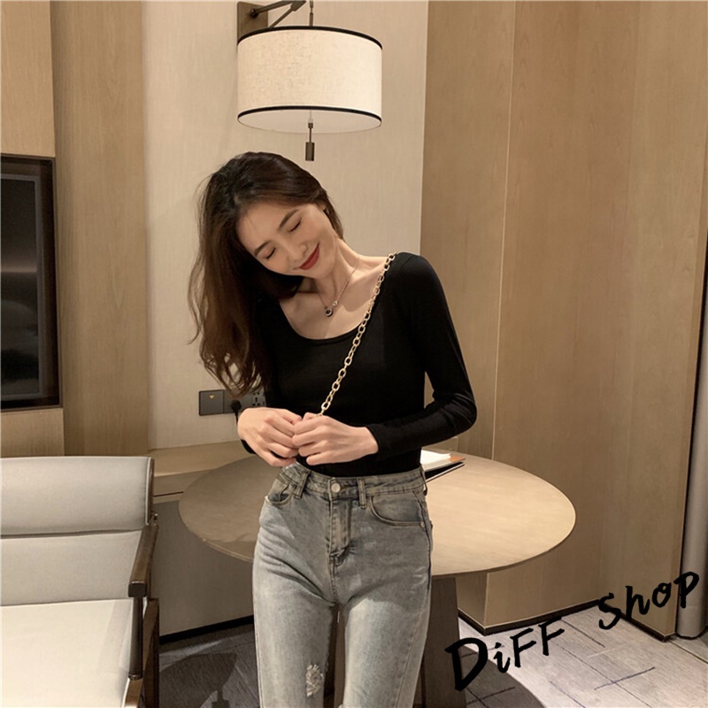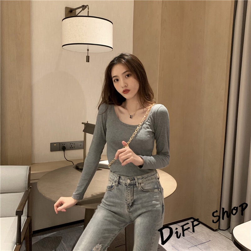 【DIFF】韓版圓領打底彈性顯瘦長袖上衣 女裝 衣服 寬鬆上衣 顯瘦上衣 長袖t恤 冬裝 素T【W296】