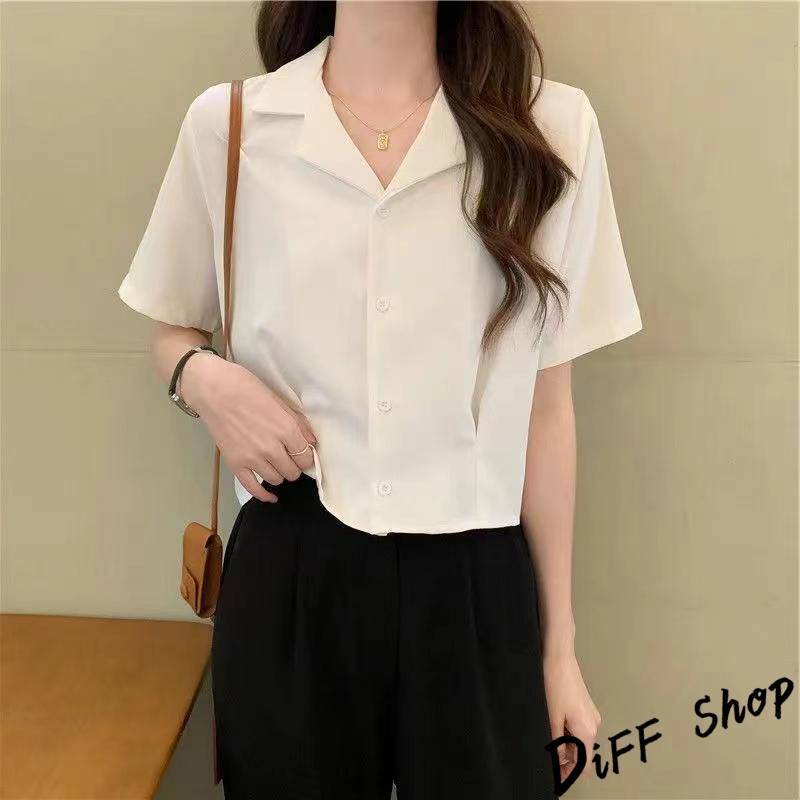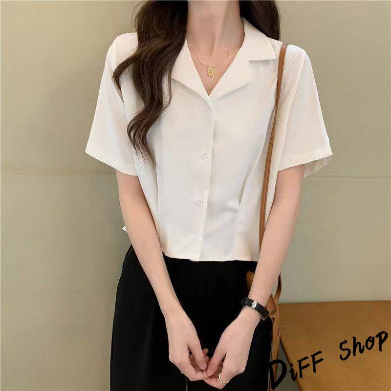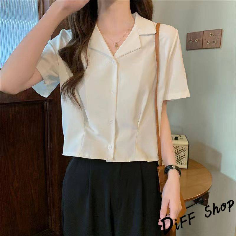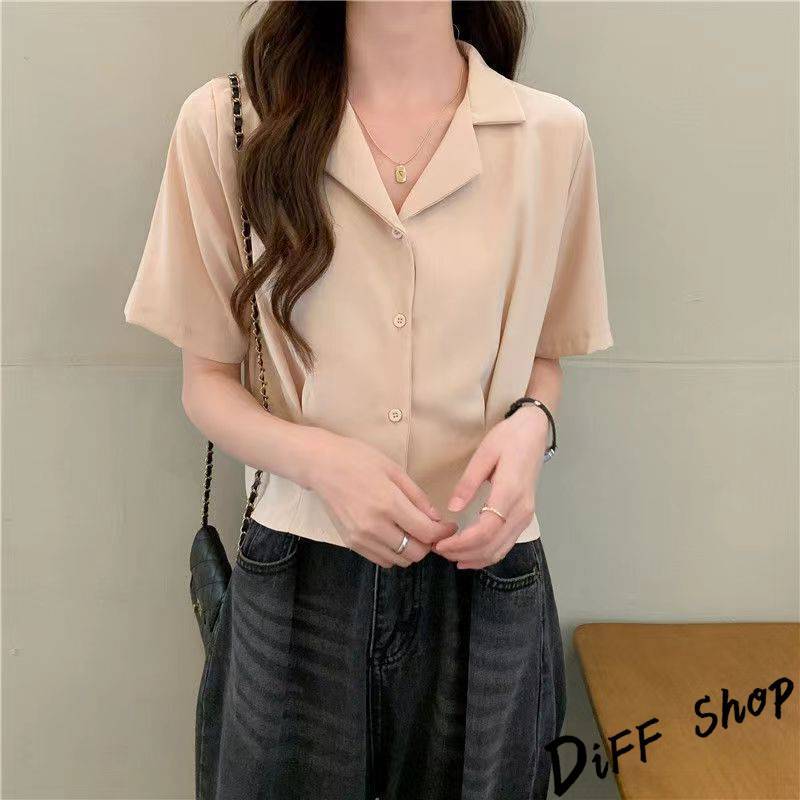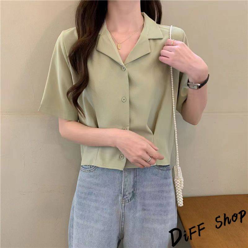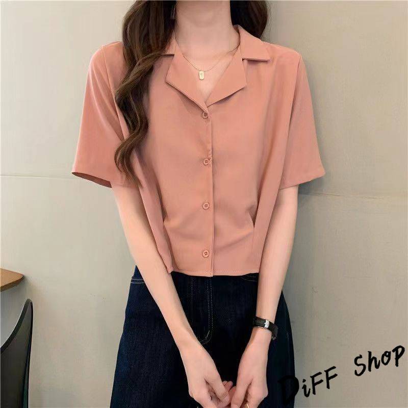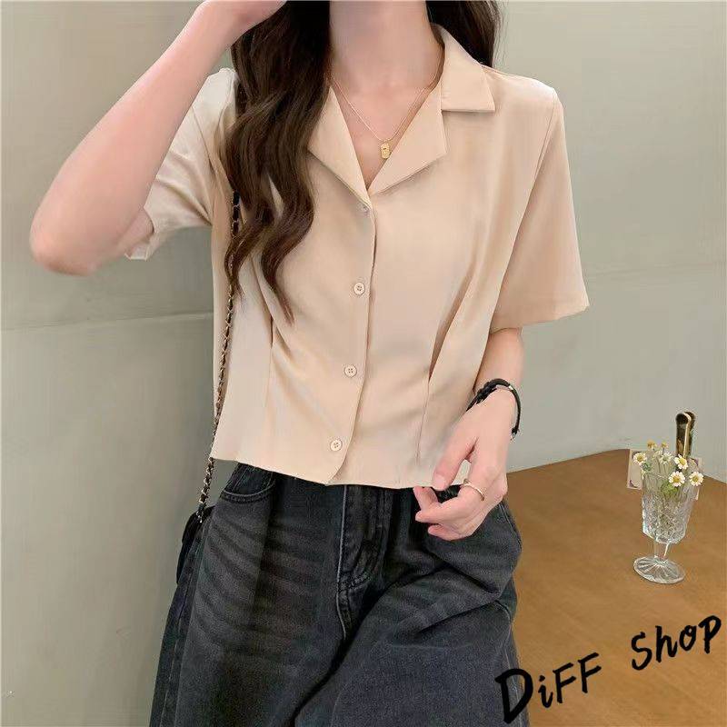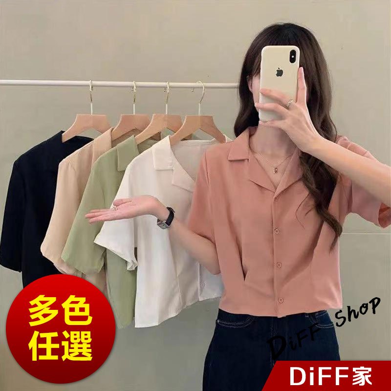 【DIFF】韓版西裝領顯瘦短袖襯衫 短版上衣 短袖上衣 短袖t恤 女裝 顯瘦上衣 衣服 素T 短板上衣【T584】【T584】白色|【T584】綠色|【T584】黑色|【T584】杏色|【T584】粉色Shirts & BlousesDiFF shop