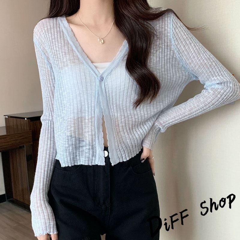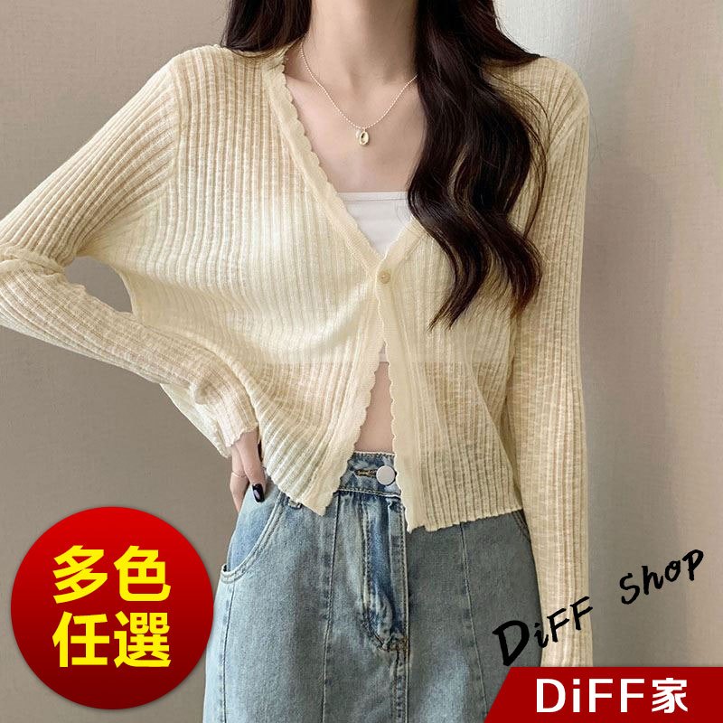 【DIFF】韓版薄款寬鬆針織防曬外套 上衣 女裝 衣服 外套 長袖上衣 短版外套 針織上衣 薄外套 罩衫【J340】【J340】藍色|【J340】黑色|【J340】白色|【J340】紫色|【J340】杏色DiFF shop