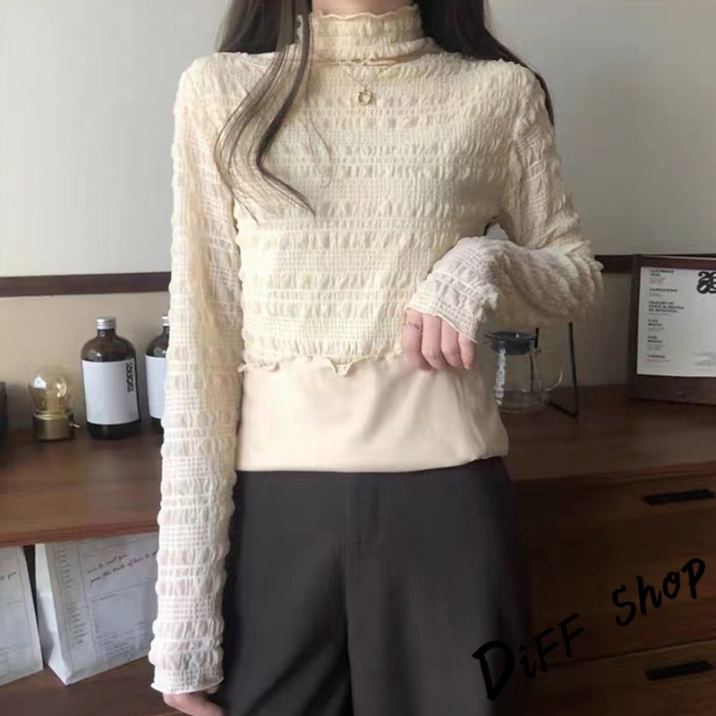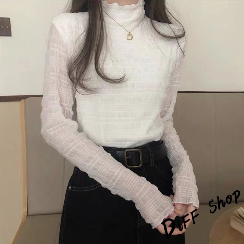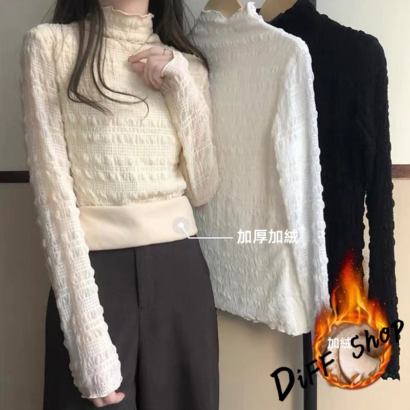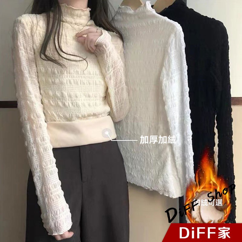 【DIFF】韓版蕾絲半高領內搭顯瘦長袖上衣 衣服 長袖t恤 保暖上衣 冬天女裝 秋冬女裝 發熱衣 高領內搭【W589】【W589】黑色|【W589】白色|【W589】杏色Thermal InnerwearDiFF shop