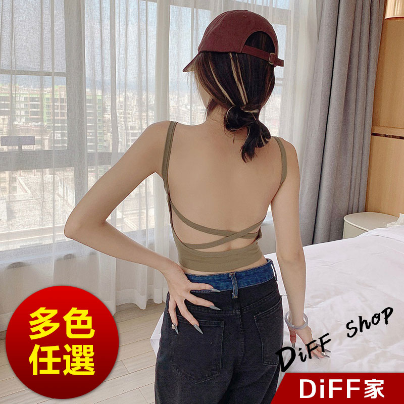 【DIFF】韓版露背交叉美背一體式小可愛 帶胸墊免穿內衣 背心 上衣 女裝 衣服 短版上衣 運動背心【V105】【V105】奶茶色|【V105】黑色|【V105】白色Tanks & CamisolesDiFF shop