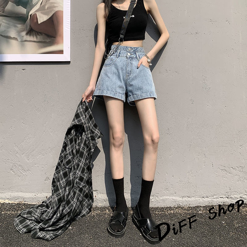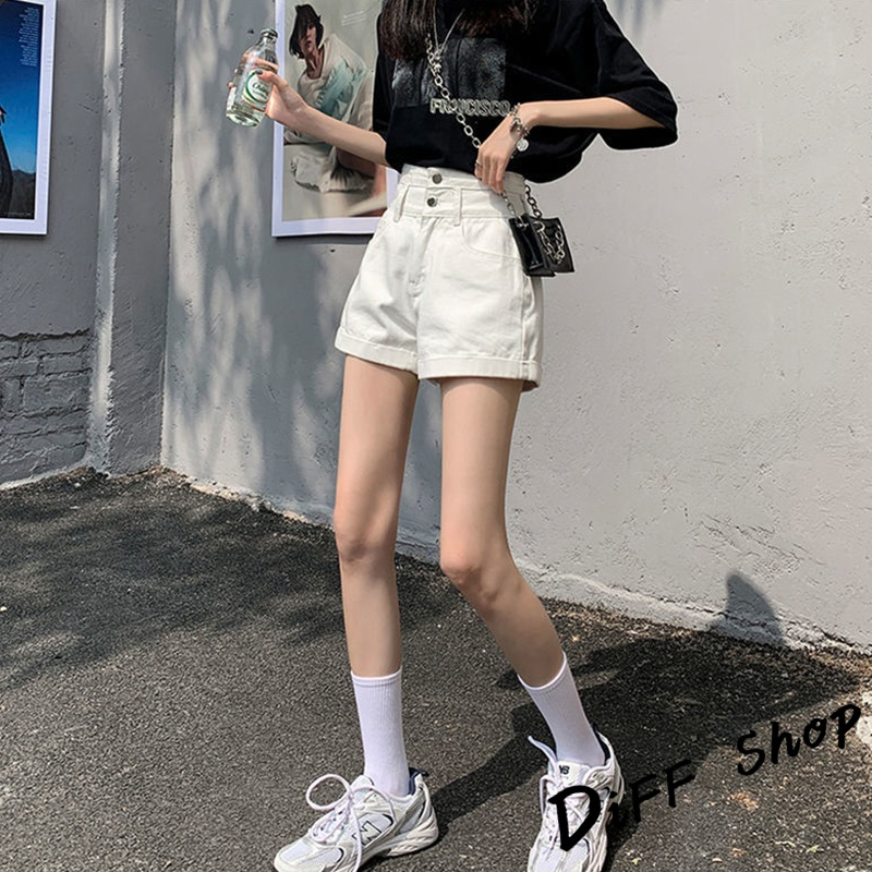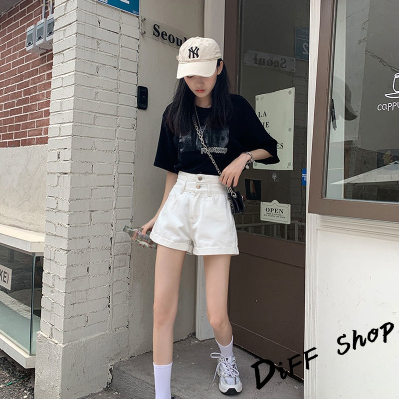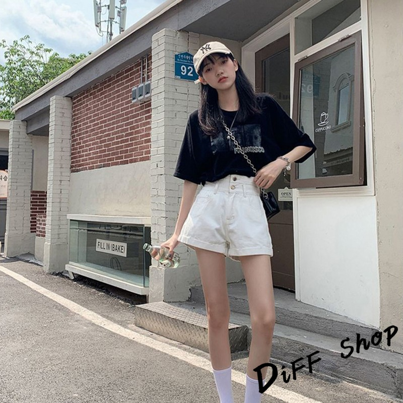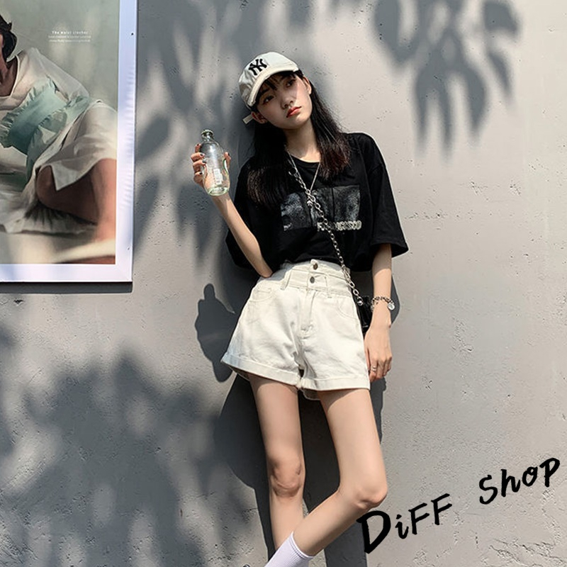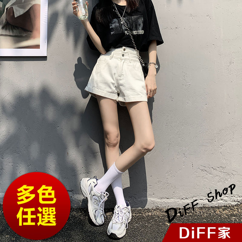 【DIFF】韓版高腰寬鬆顯瘦捲邊牛仔短褲 休閒褲 短褲 褲子 運動短褲 女裝 休閒短褲 寬褲 高腰褲 黑褲【P199】【P199】白色XL號|【P199】黑色L號|【P199】淺藍色XL號|【P199】白色M號|【P199】白色L號|【P199】淺藍色M號|【P199】淺藍色L號|【P199】黑色M號|【P199】黑色XL號ShortsDiFF shop