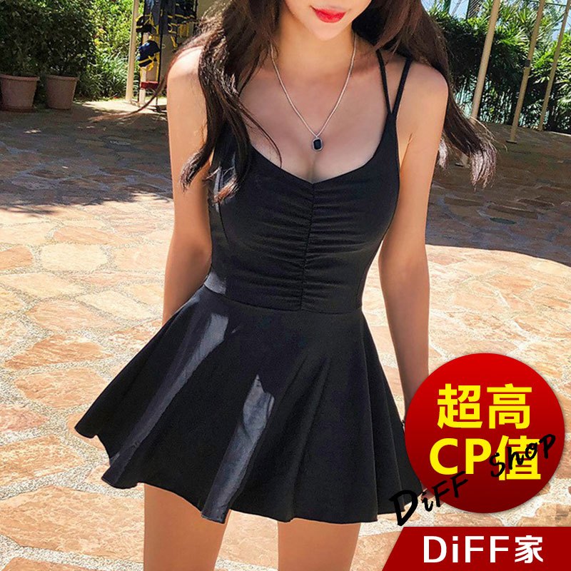 【DIFF】韓版舒適顯瘦露背連身泳衣 帶胸墊 保守泳衣 泳裝 背心泳衣 套裝 上衣 比基尼 女生泳衣 女裝【S133】【S323】黑色OthersDiFF shop