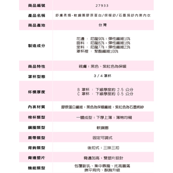凱沃 慕思爾 Choy’s Dream 巧衣織夢 舒膚柔媚 軟鋼圈 膠原蛋白/保暖纖維/石墨烯紗內裏內衣 B C MIT膚,40B|膚,34C|膚,40C|膚,32C|膚,36C|膚,38C|膚,32B|膚,34B|膚,36B|膚,38B|黑,32B|黑,34B|黑,36C|黑,40C|黑,36B|黑,34C|黑,38C|黑,38B|黑,40B|黑,32CSetsChoy’s Dream 巧衣織夢內衣-慕思爾內衣&凱沃內衣專賣