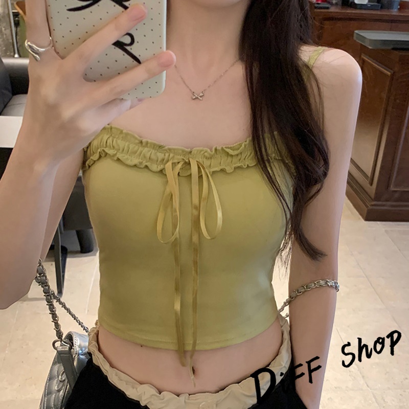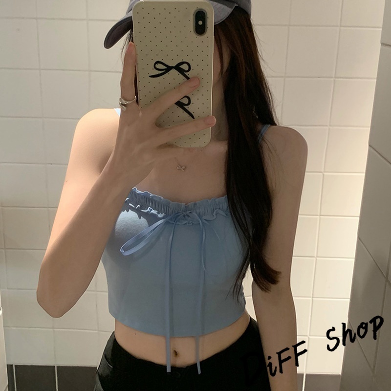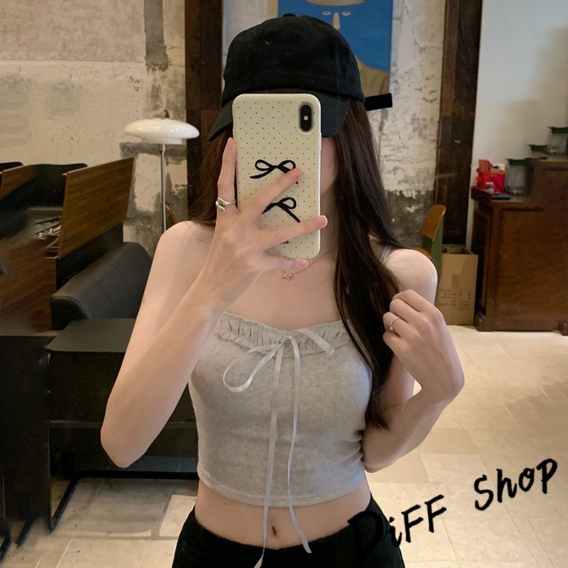 【DIFF】韓版設計感蝴蝶結短版背心 帶胸墊免穿內衣 小可愛 女裝 衣服 短版上衣 短板 運動背心 運動上衣【V367】【V367】白色|【V367】黃色|【V367】黑色|【V367】天藍色|【V367】灰色Tanks & CamisolesDiFF shop