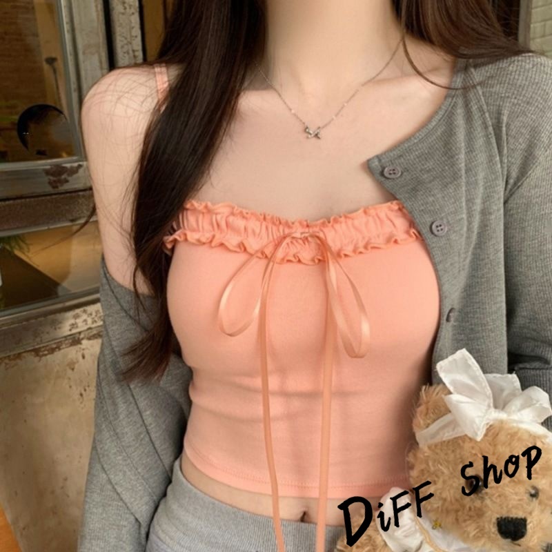 【DIFF】韓版設計感蝴蝶結短版背心 帶胸墊免穿內衣 小可愛 女裝 衣服 短版上衣 短板 運動背心 運動上衣【V367】