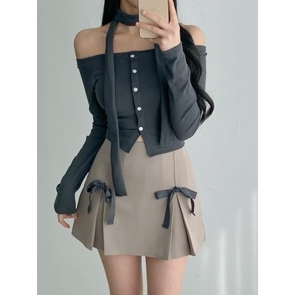 Codibook|韓國 dangosister 荷葉邊長袖鈕釦開衫連身上衣[預購]長袖上衣 女裝象牙白|深灰色|黑色T-shirtsCodibook 韓國女裝購物平台