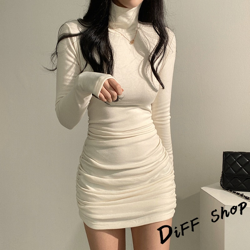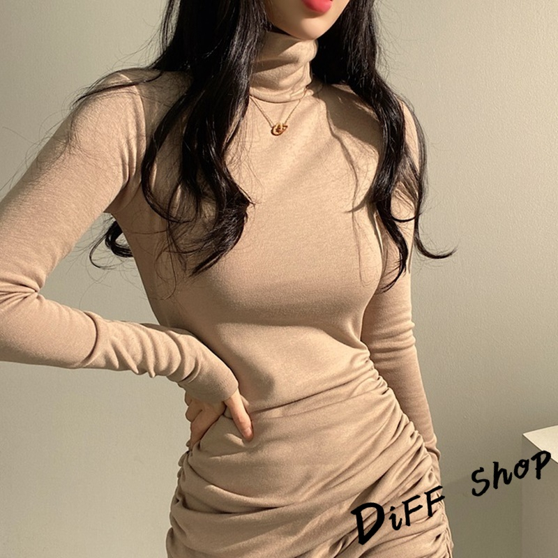 【DIFF】韓版高領氣質彈性修身連衣裙 連身裙 長袖上衣 女裝 衣服 顯瘦上衣 長袖t恤 冬裝 發熱衣【S241】【S241】白色|【S241】奶茶|【S241】深灰|【S241】黑色DiFF shop