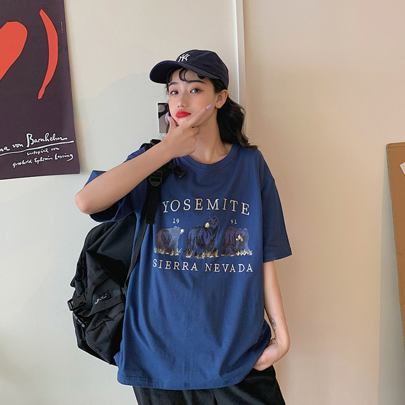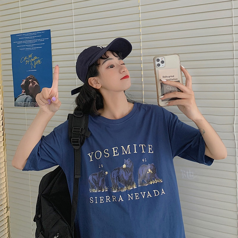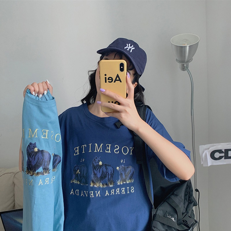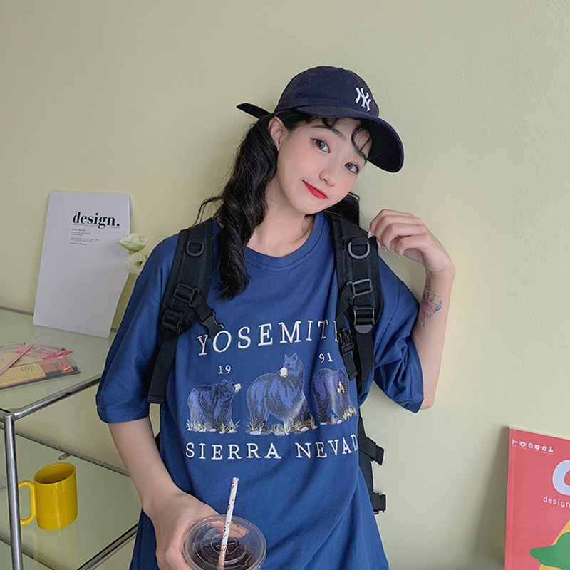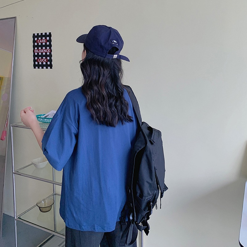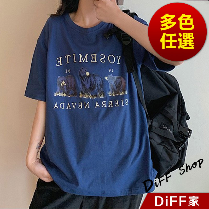 【DIFF】韓版寬鬆顯瘦字母短袖上衣 短袖上衣 短袖t恤 女裝 顯瘦上衣 衣服 寬鬆上衣【T542】【T542】藏藍色|【T542】淺藍色T-shirtsDiFF shop