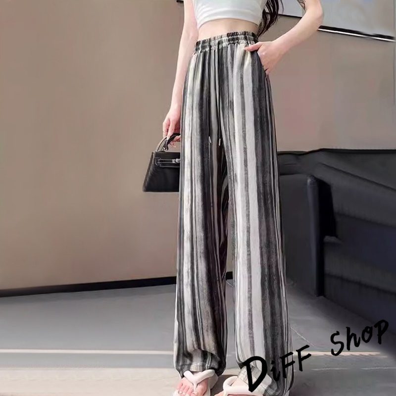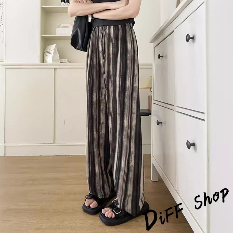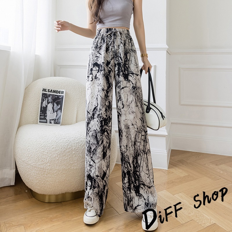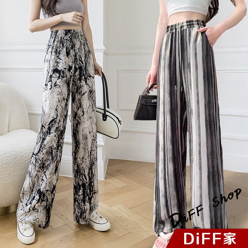 【DIFF】韓版新中式水墨畫垂感寬褲 褲子 長褲 休閒褲 女裝 高腰褲 拖地褲 直筒褲 黑褲【P335】【P335】水墨杏色|【P335】山水詩畫|【P335】蝴蝶款|【P335】豎條麻灰PantsDiFF shop