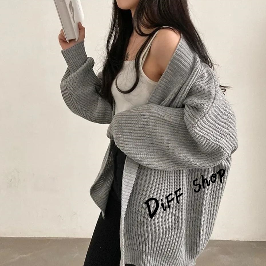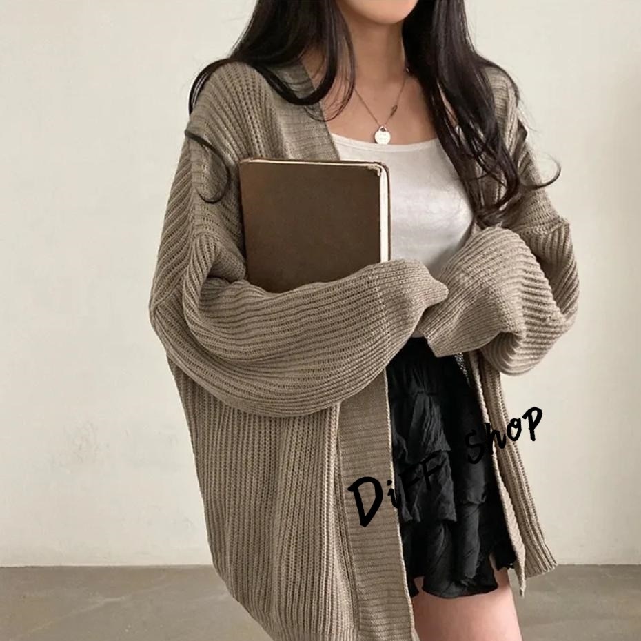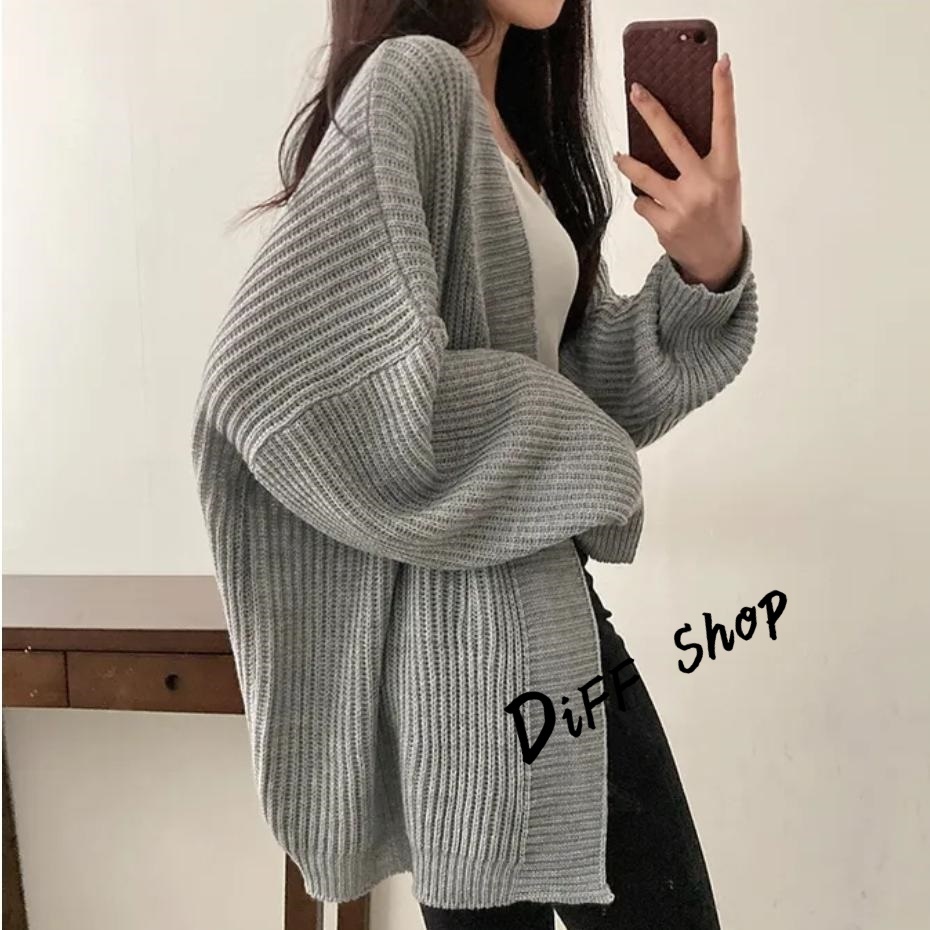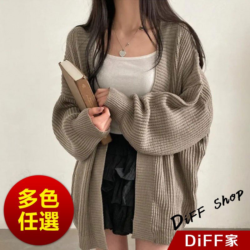 【DIFF】韓版簡約寬鬆慵懶風針織外套 毛衣 針織上衣 長版外套 女裝 衣服 上衣 保暖外套 保暖上衣【J345】【J345】卡其色|【J345】灰色|【J345】黑色|【J345】米白色DiFF shop