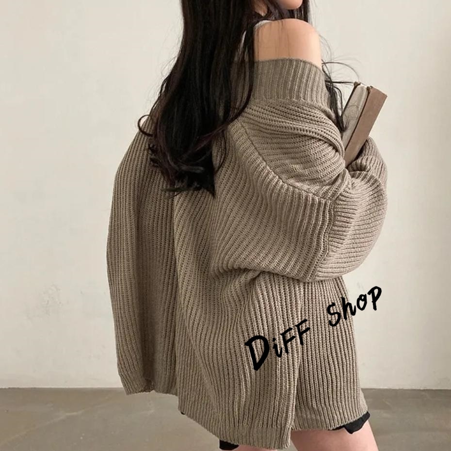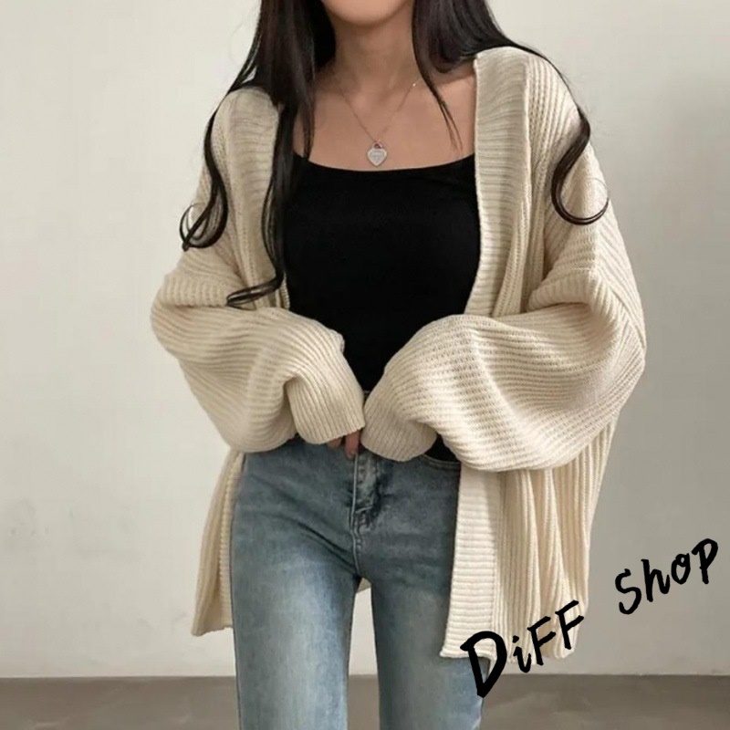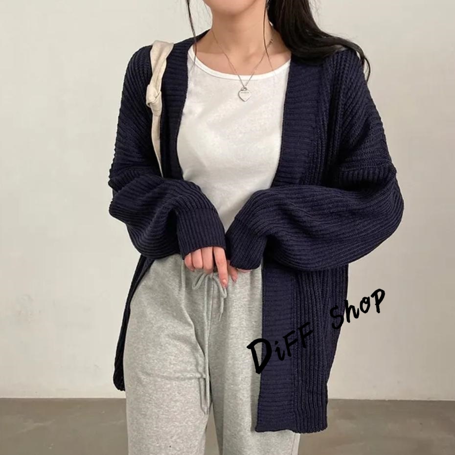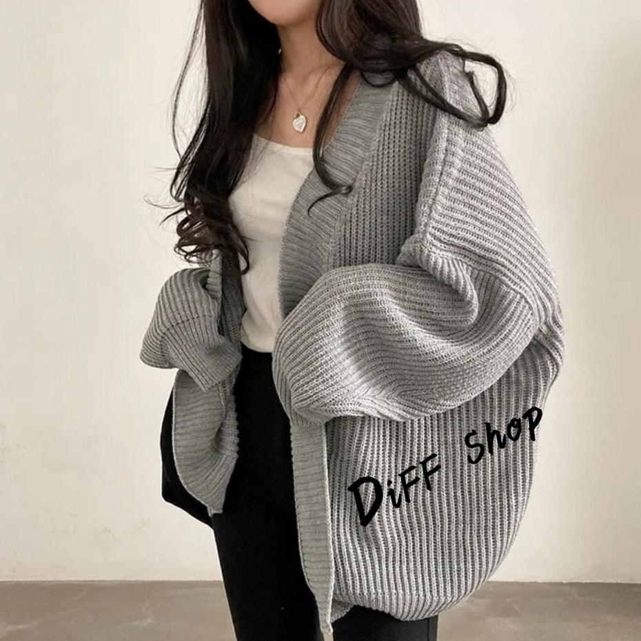 【DIFF】韓版簡約寬鬆慵懶風針織外套 毛衣 針織上衣 長版外套 女裝 衣服 上衣 保暖外套 保暖上衣【J345】【J345】卡其色|【J345】灰色|【J345】黑色|【J345】米白色DiFF shop