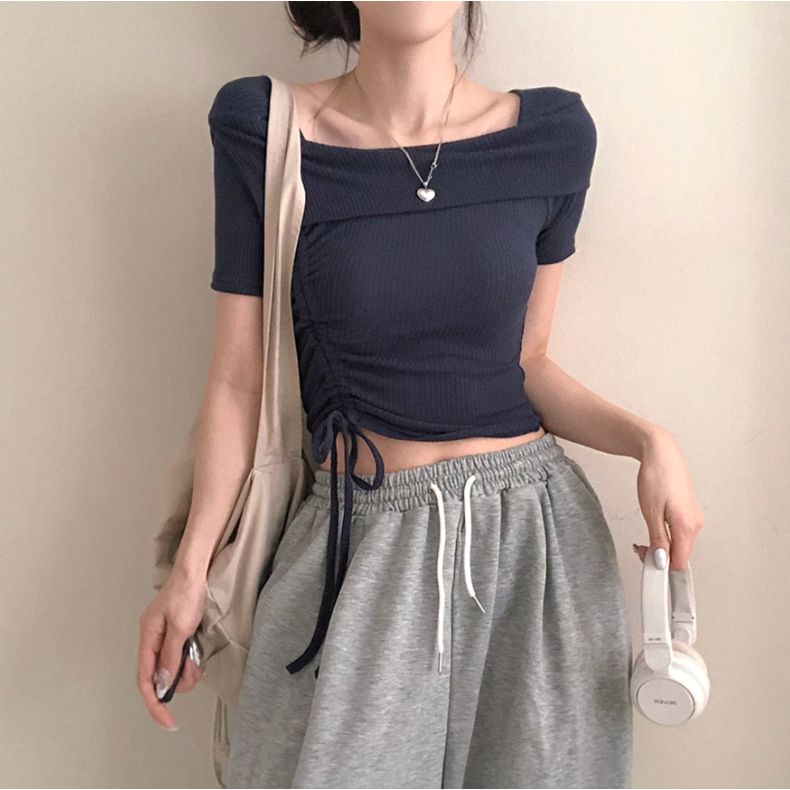 Codibook|韓國 gifteabox 方領露肩抓皺短袖T恤[預購]短袖上衣 T恤 女裝海軍藍,free|淺粉紅,free|象牙白,free|黑色,free|天空藍,freeT-shirtsCodibook 韓國女裝購物平台