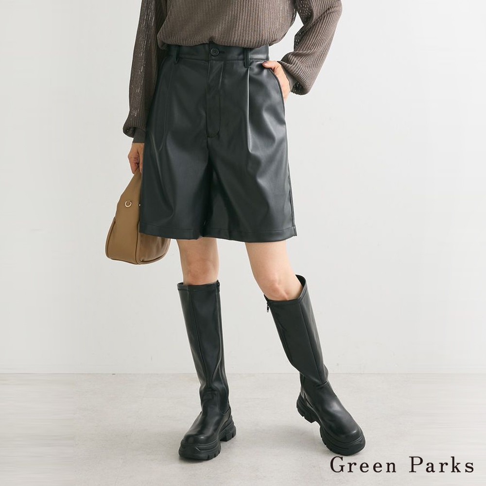 Green Parks 光澤率性皮革短褲(6A43L0F1400)黑色FShortsearth music&ecology Select Store