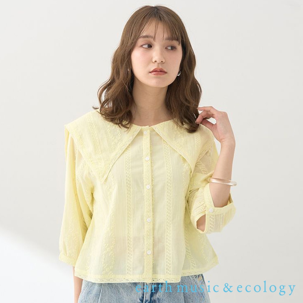 earth music&ecology 刺繡蕾絲純棉水手領七分袖襯衫(01000134000)本白F|黑色F|黃色FShirts & Blousesearth music&ecology Select Store
