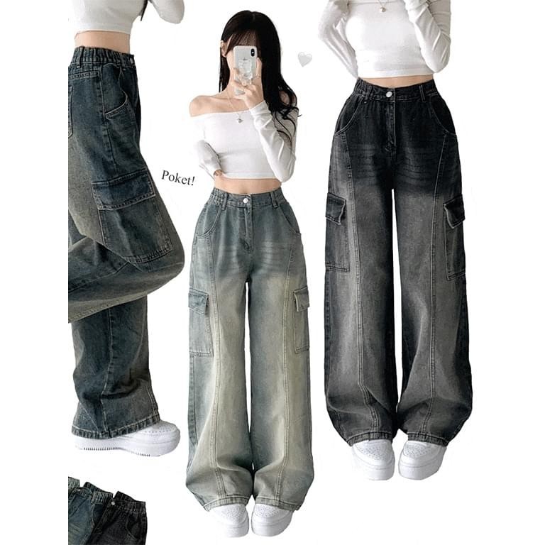 Codibook|韓國 JASMINBELL 復古水洗寬鬆多袋蓋長哈倫牛仔褲[預購]牛仔褲 女裝黑色,S|黑色,M|深藍色,L|天空藍,L|天空藍,S|深藍色,M|天空藍,M|黑色,L|深藍色,SCodibook 韓國女裝購物平台
