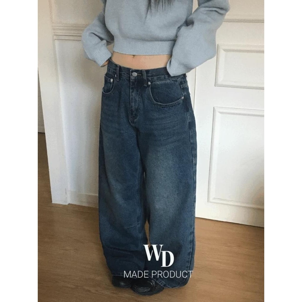 Codibook|韓國 wonderwonder 水洗剪裁寬版丹寧牛仔褲[預購]牛仔褲 女裝青藍,S|青藍,MCodibook 韓國女裝購物平台