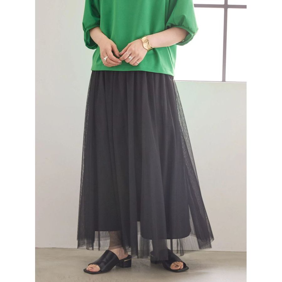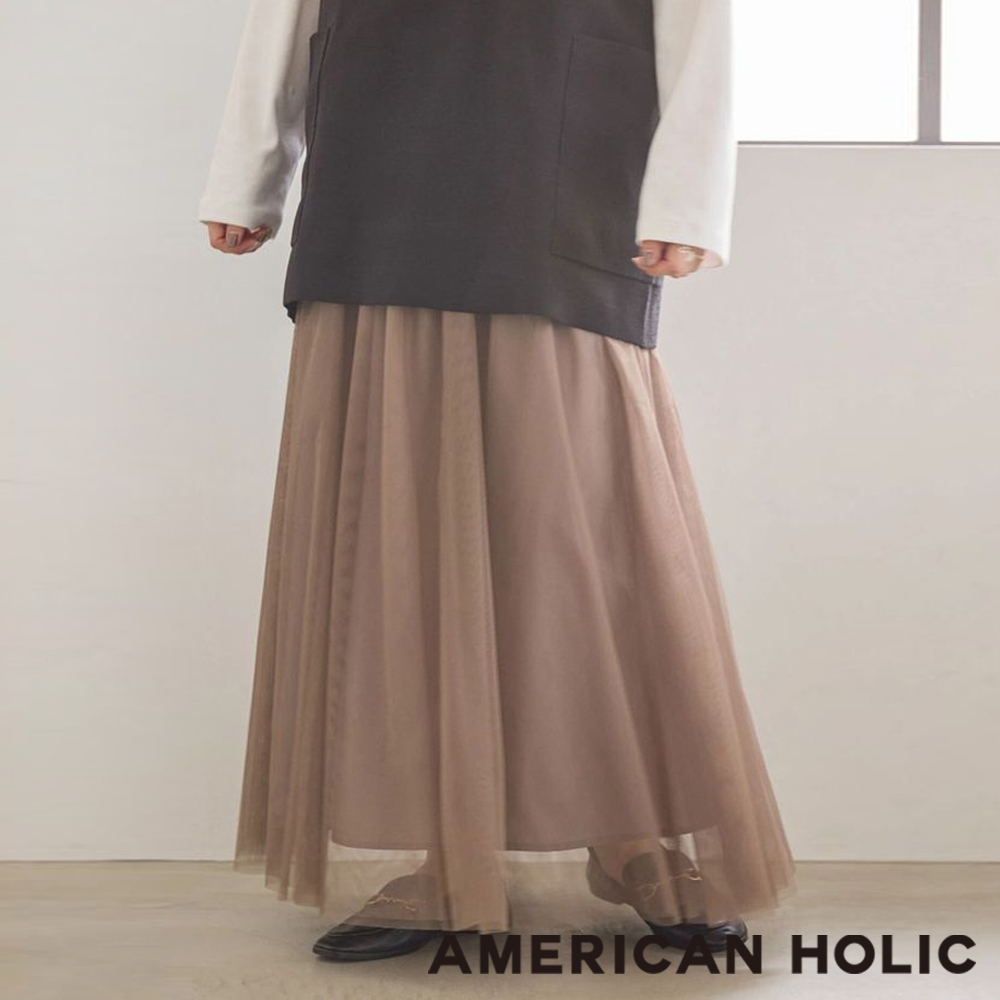 AMERICAN HOLIC 薄紗層疊抓褶長裙(HA43L0L0100)格紋M|格紋L|黑色M|黑色L|深咖啡色M|深咖啡色L|豹紋M|豹紋Learth music&ecology Select Store