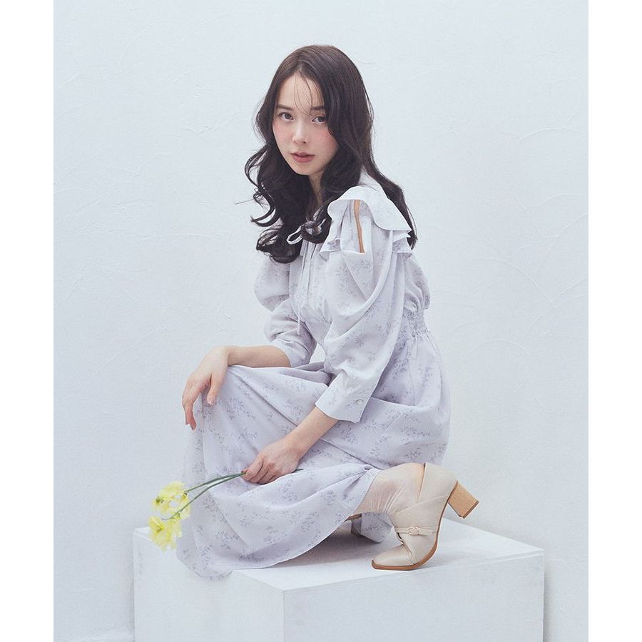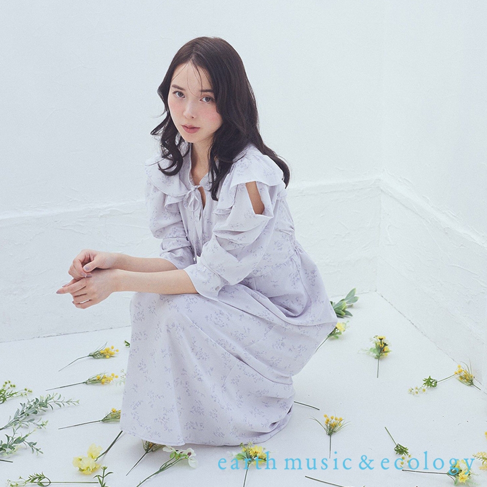 earth music&ecology 花卉圖案立體荷葉摺邊剪裁洋裝(01000117400)淡青色F|象牙色F|黑色Fearth music&ecology Select Store