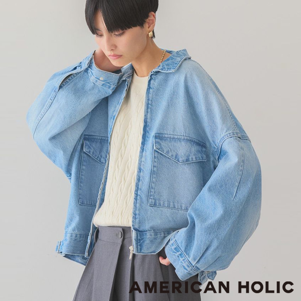 AMERICAN HOLIC 率性拉鍊雙口袋短版牛仔外套(HD51L0Y0200)白色M|淡靛藍色MJacketsearth music&ecology Select Store