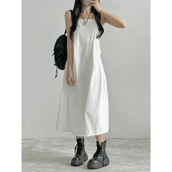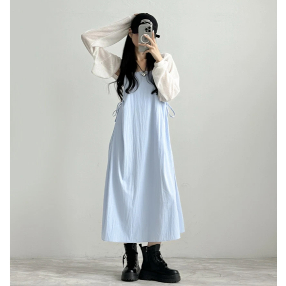 Codibook|韓國 lipkko 方領細肩帶長版連身洋裝[預購]長洋裝 細肩帶緞面洋裝 女裝黑色,FREE|象牙白,FREE|天空藍,FREECodibook 韓國女裝購物平台