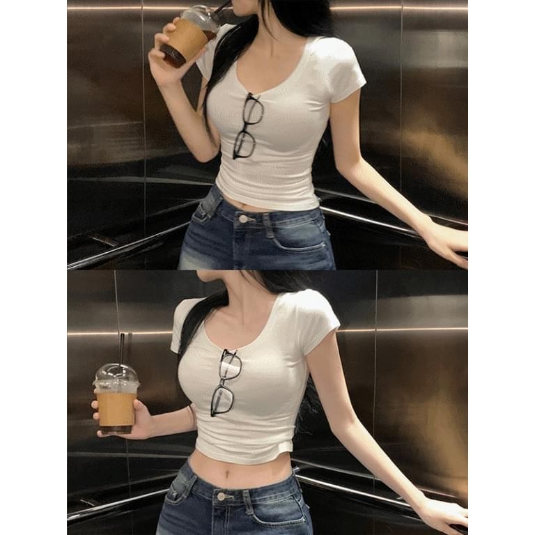 Codibook|韓國 JASMINBELL 柔軟修身U領短袖緊身T恤[預購]短袖上衣 T恤 女裝象牙白,無|淺米色,無|灰色,無|黑色,無T-shirtsCodibook 韓國女裝購物平台