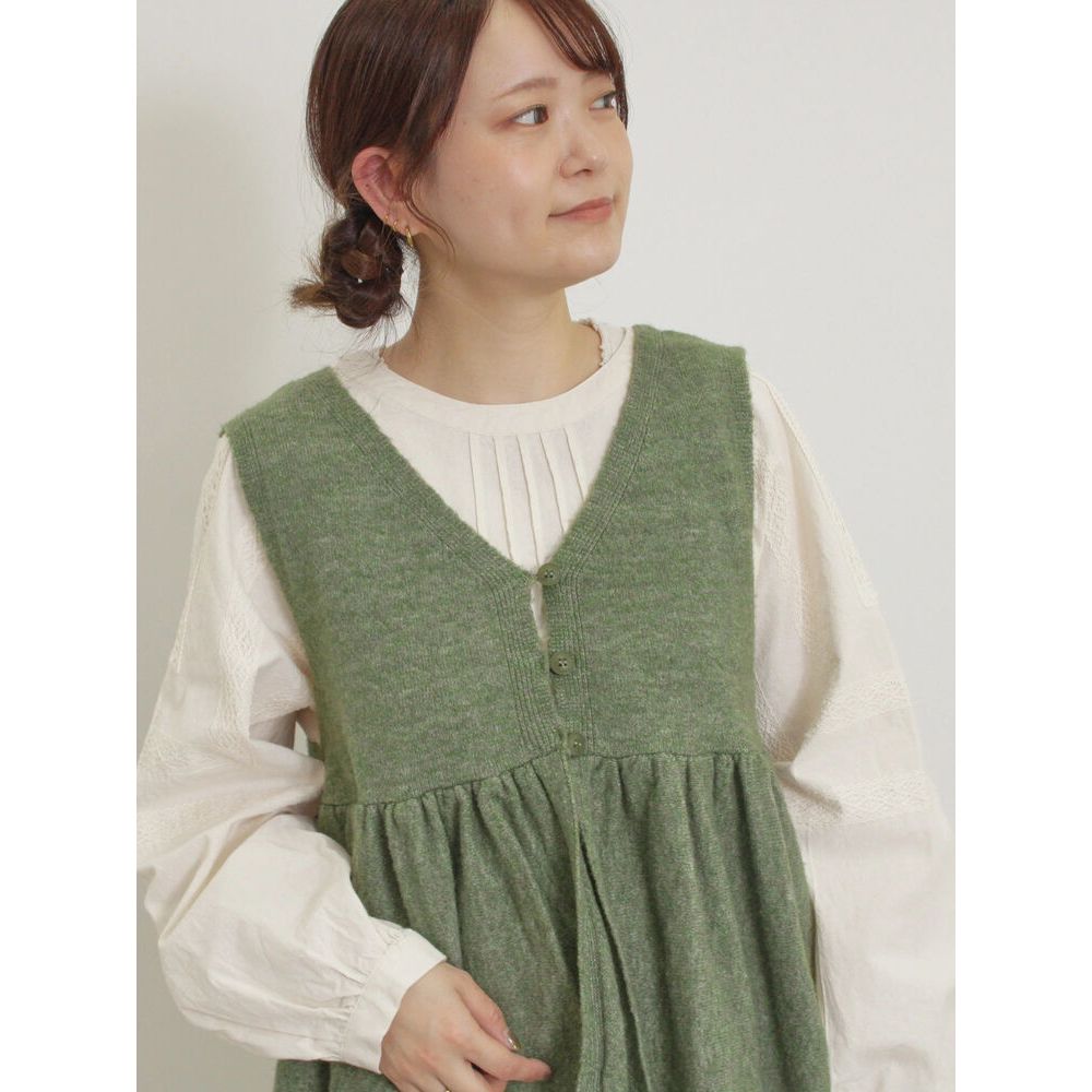 Samansa Mos2 2WAY前後兩穿下擺荷葉邊拼接針織背心(0F000406910)象牙色F|粉紅色F|深咖啡色F|綠色Fearth music&ecology Select Store