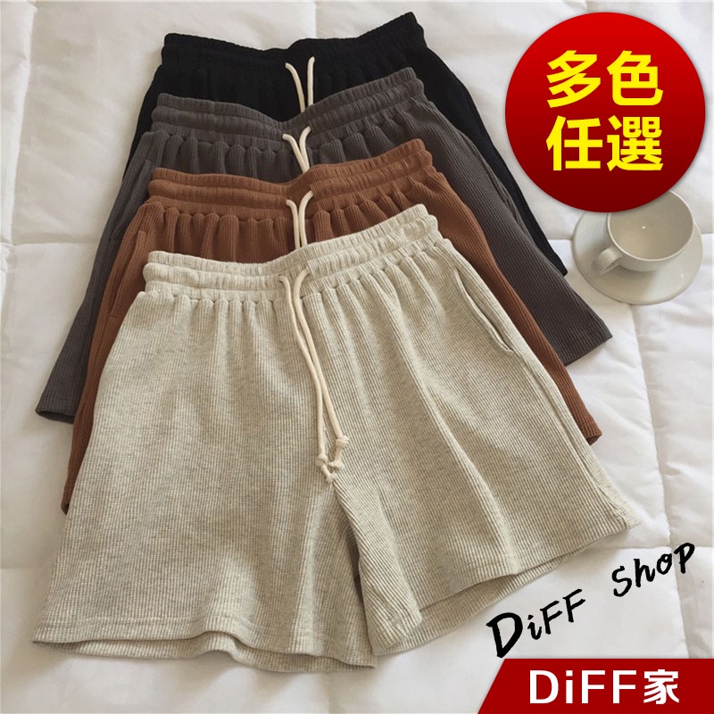 【DIFF】韓版高腰顯瘦寬鬆運動短褲 休閒褲 短褲 褲子 運動短褲 女裝 休閒短褲 寬褲 運動褲【P208】【P208】黑色|【P208】深灰|【P208】杏色|【P208】焦糖ShortsDiFF shop