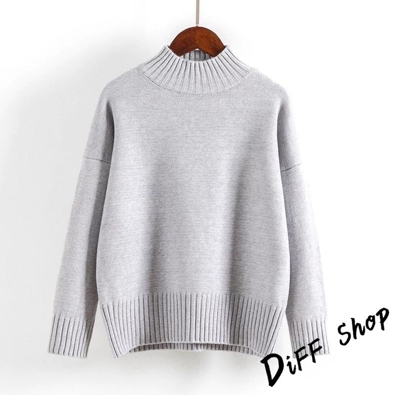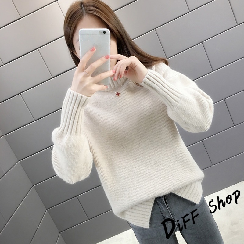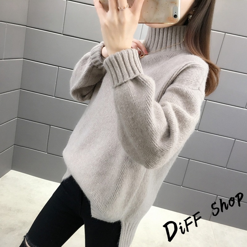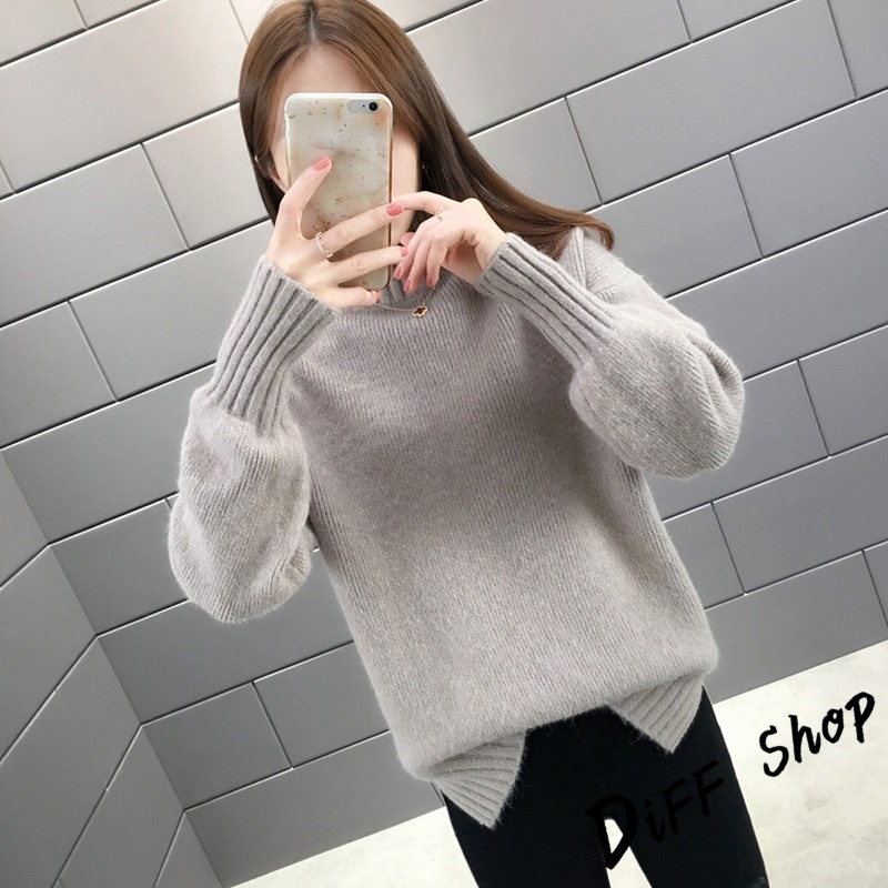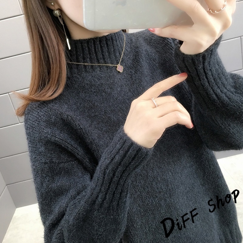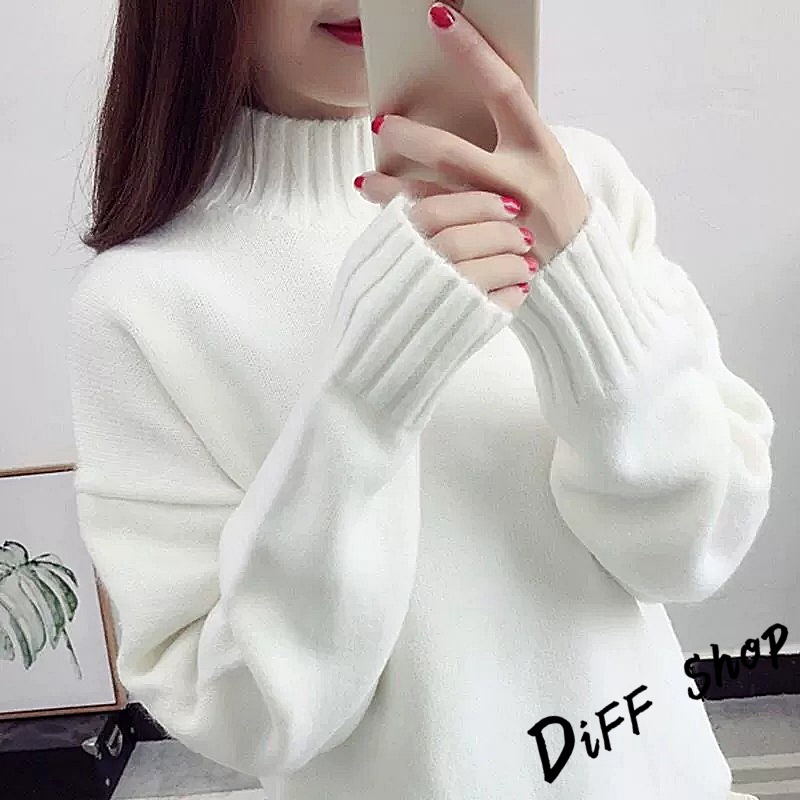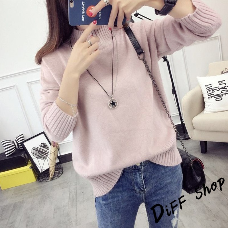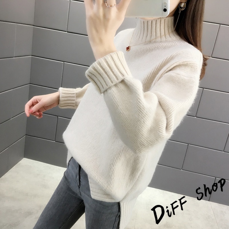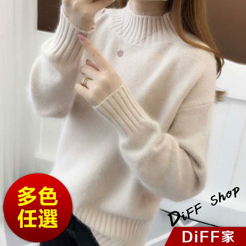 【DIFF】韓版半高領顯瘦寬鬆針織上衣 毛衣 長袖上衣 衣服 長袖t恤 保暖上衣 冬天女裝 秋冬女裝 發熱衣【W610】【W610】杏色|【W610】白色DiFF shop