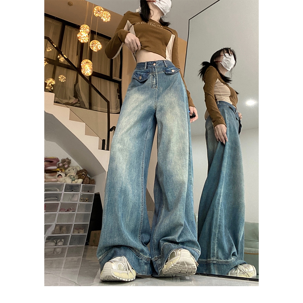 【DIFF】韓版顯瘦垂墜感寬鬆高腰西裝褲 寬褲 褲子 長褲 休閒褲 女裝 高腰褲 拖地褲 直筒褲 黑褲【P130】