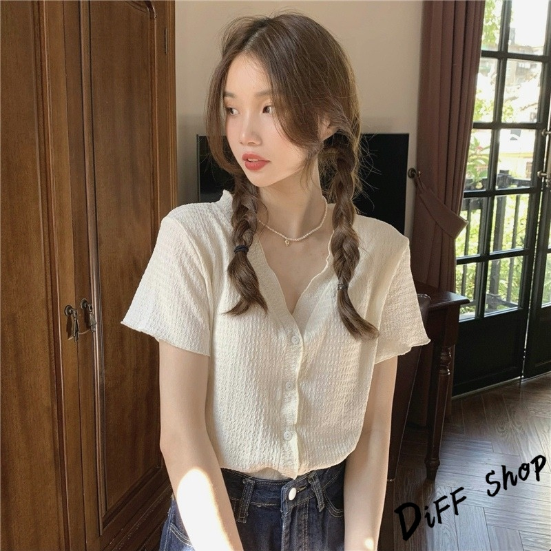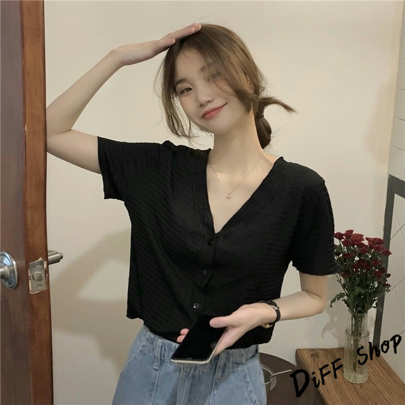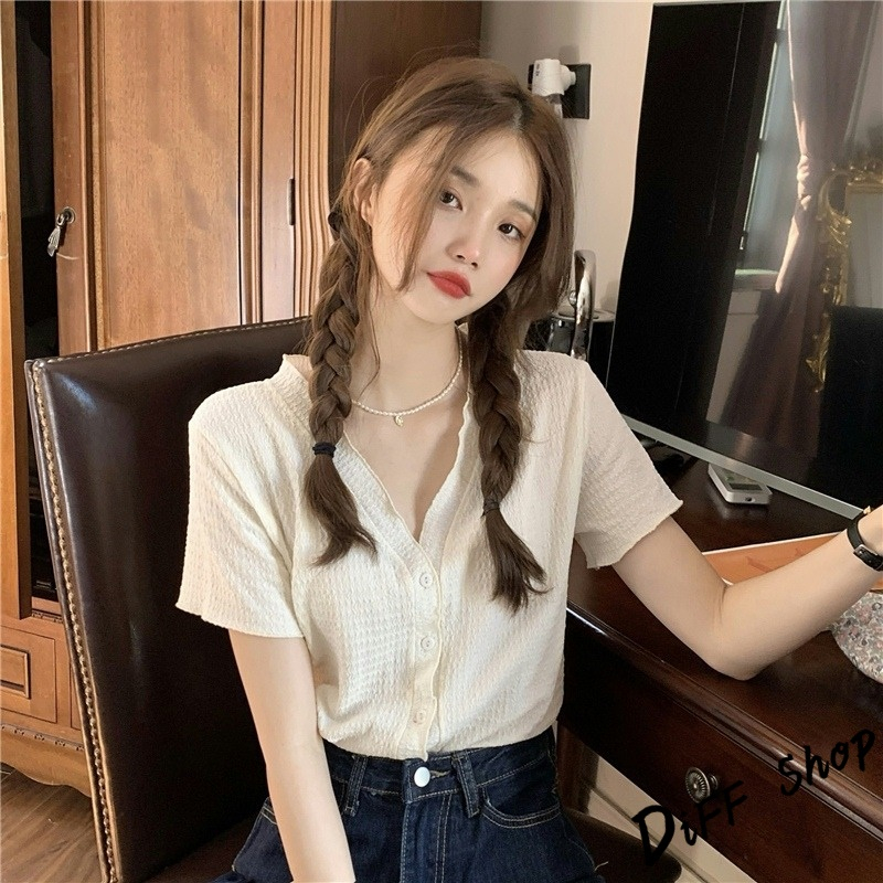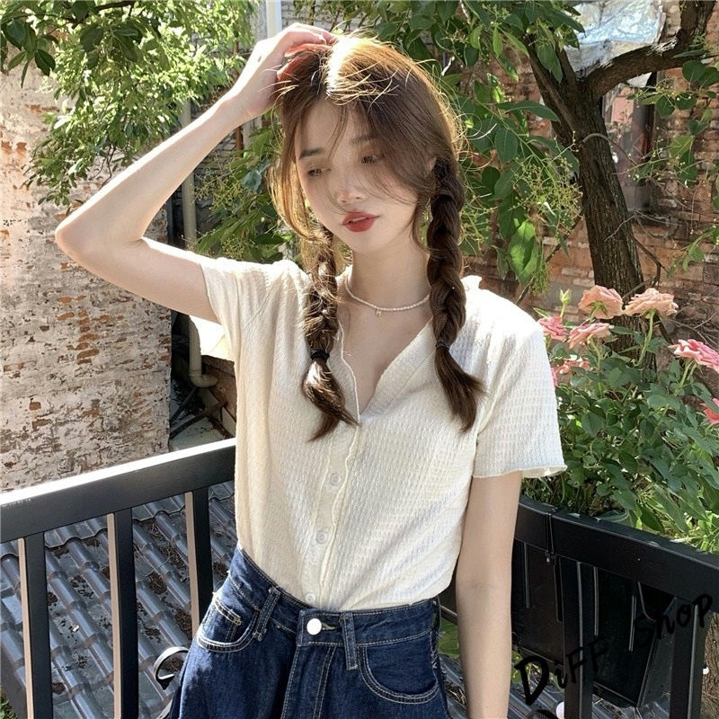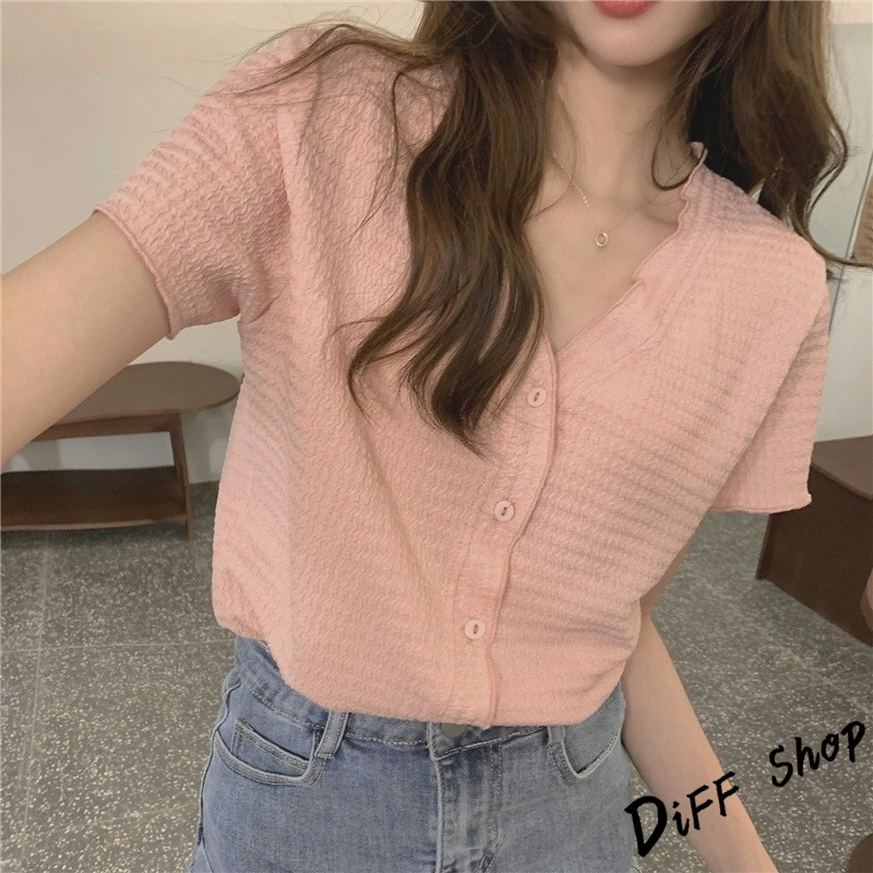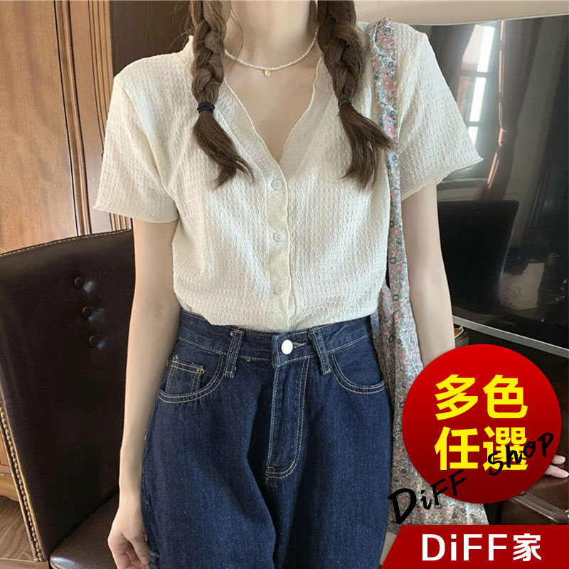【DIFF】韓版氣質V領設計感小眾顯瘦襯衫 針織上衣 短袖上衣 短袖t恤 女裝 顯瘦上衣 衣服 寬鬆上衣【T565】【T565】白色|【T565】粉色|【T565】黑色Shirts & BlousesDiFF shop