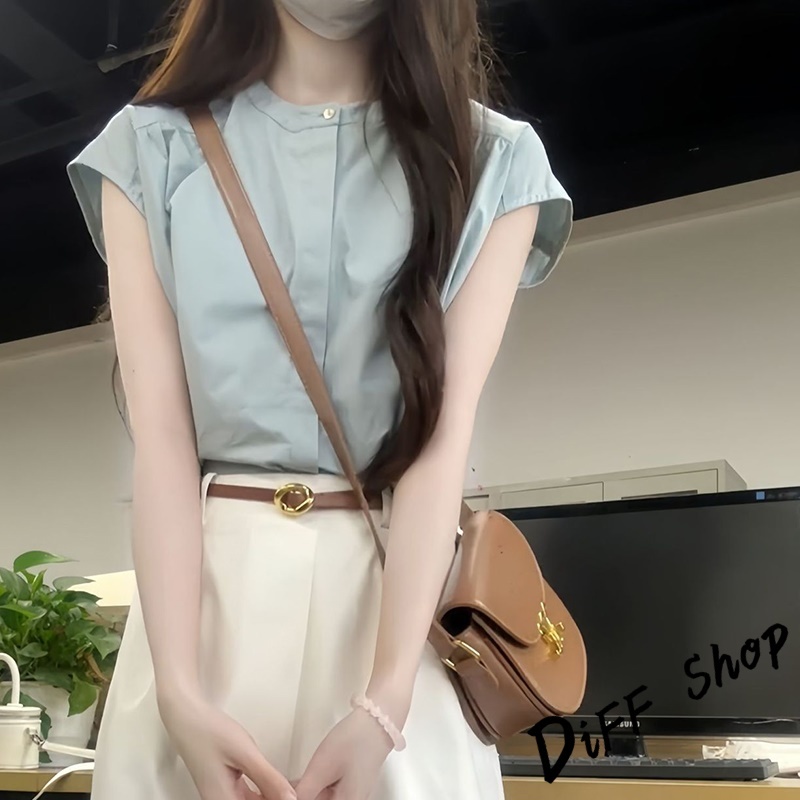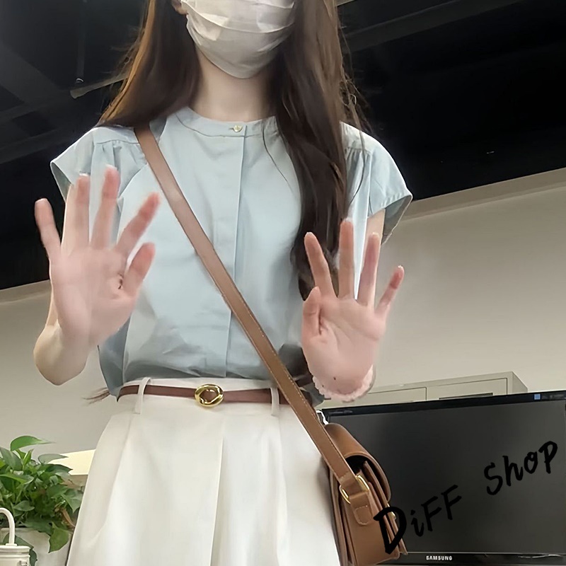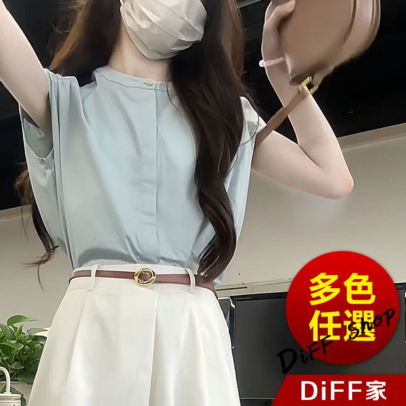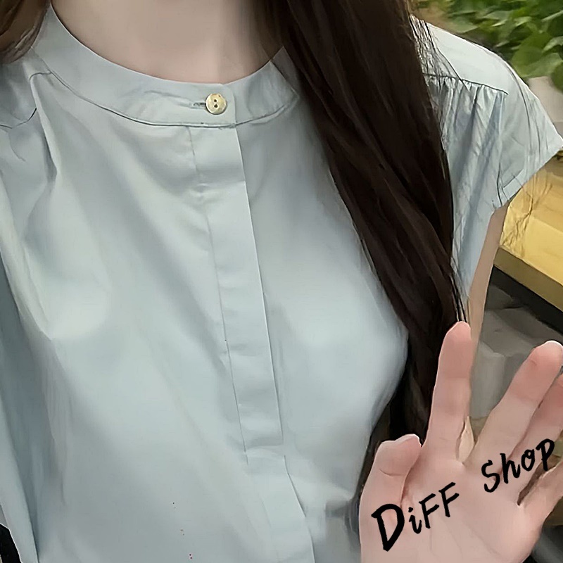 【DIFF】韓版氣質法式設計感小飛袖襯衫 無袖上衣 短袖上衣 背心 顯瘦上衣 衣服 夏天女裝 短版上衣 女裝【T631】【T631】淺藍色Shirts & BlousesDiFF shop